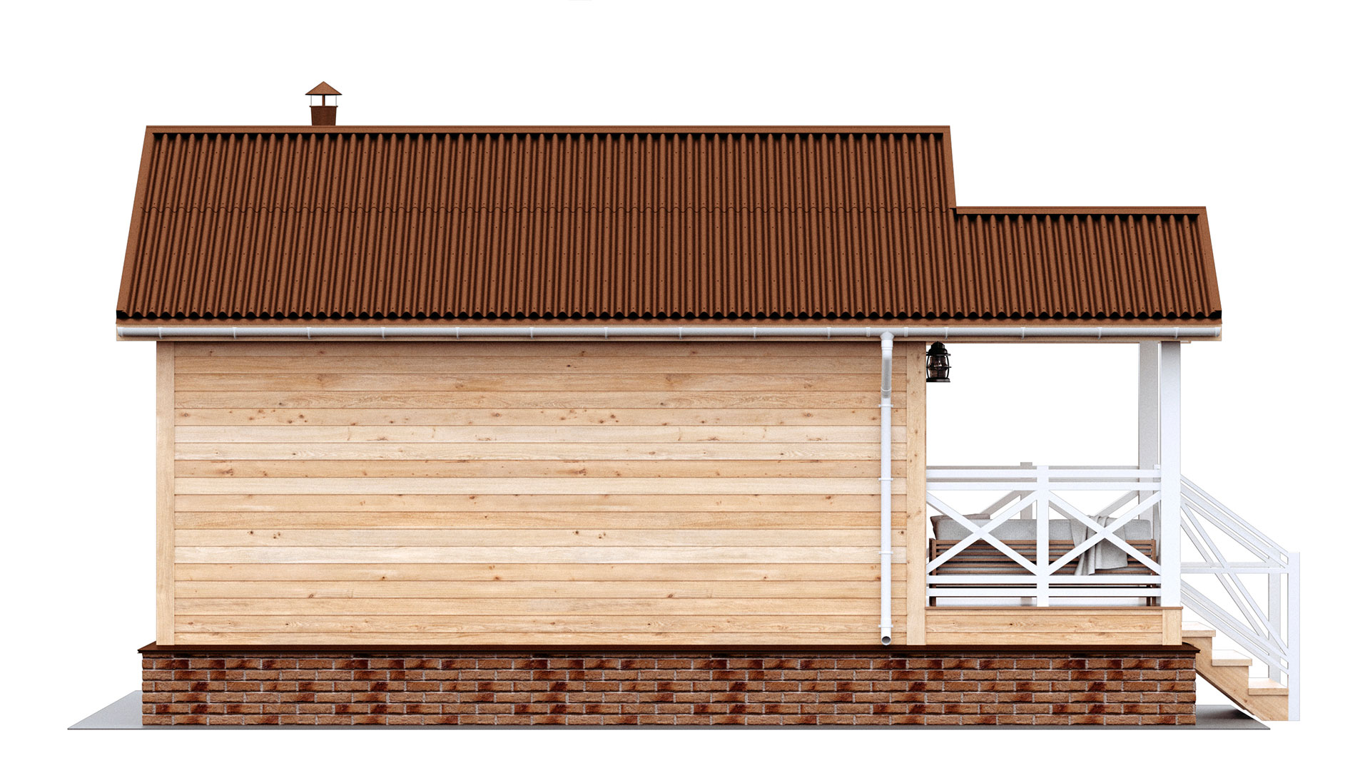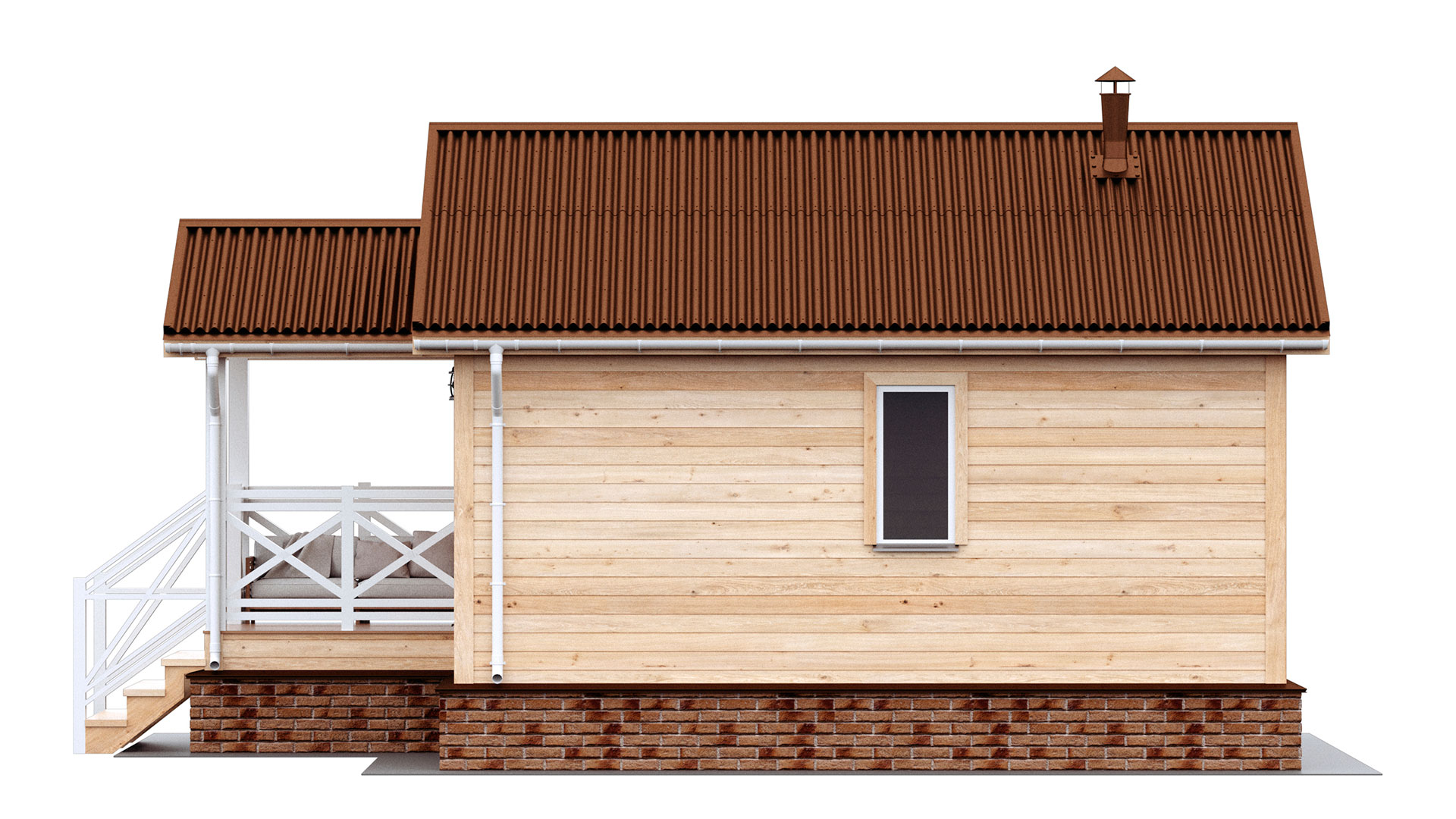 - Кровля: цветной профилированный лист С20 (цвет на выбор) с вентиляцией подкровельного пространства.