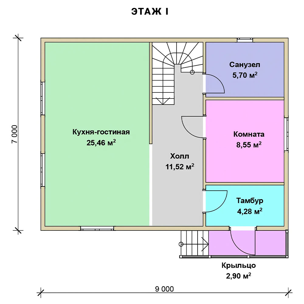 - Высота потолков 1-го этажа и мансарды: 2600 мм.