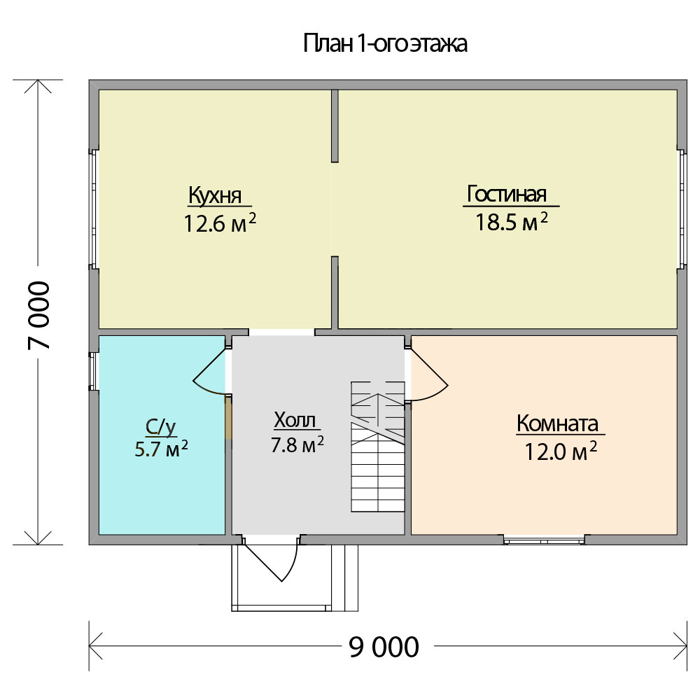 - Высота потолков 1-го этажа и мансарды: 2600 мм.