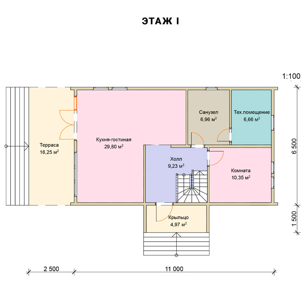 - Высота потолков 1-го этажа и мансарды: 2600 мм.
