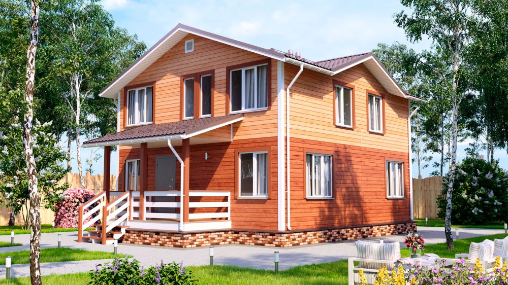 - Внешняя отделка: виниловый сайдинг Альта Профиль КЛАССИКА (цвет на выбор) с пластиковыми комплектующими, монтируется через соединительный профиль с вентиляционным зазором. Отливы металлические. Карнизы подшиваются пластиковыми софитами с перфорацией (цвет белый).