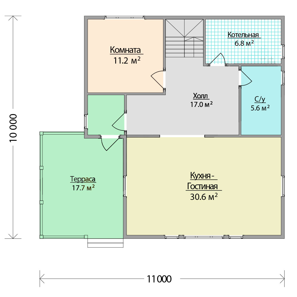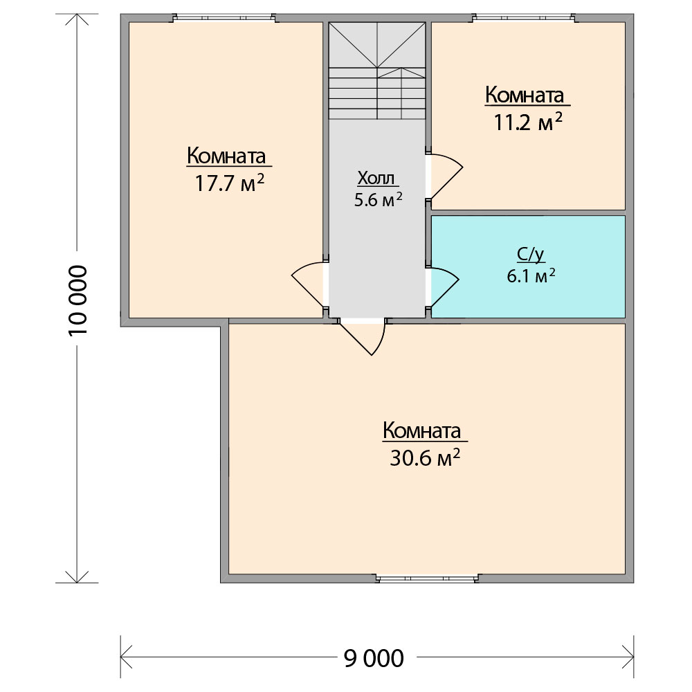 • Высота потолков 1-го и 2-го этажей: 2600 мм.