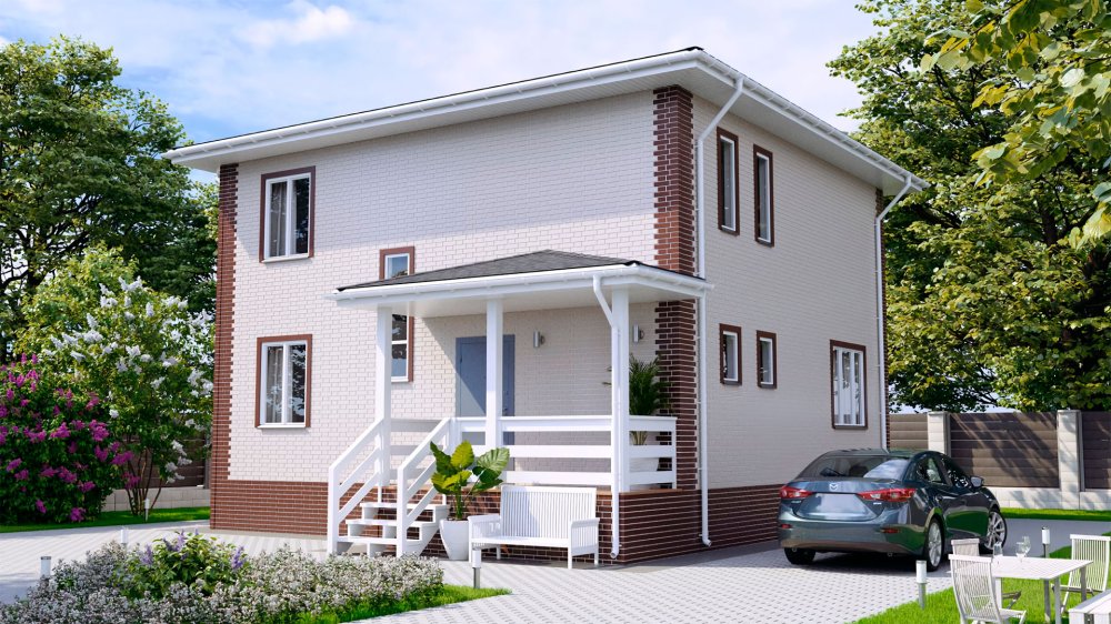 Нарядный двухэтажный дом "Енисей 1" 7,5х7,5 входит в линейку строений с лаконичной классической архитектурой. Главное украшение фасадов - большие окна (установлены двухкамерные или трехкамерные стеклопакеты, в зависимости от комплектации), и красивая отделка внешних стен. Для облицовки используются виниловый сайдинг или деревянные панели. Несмотря на отсутствие фасадных декоративных элементов, двухэтажный коттедж смотрится добротно и эстетично.