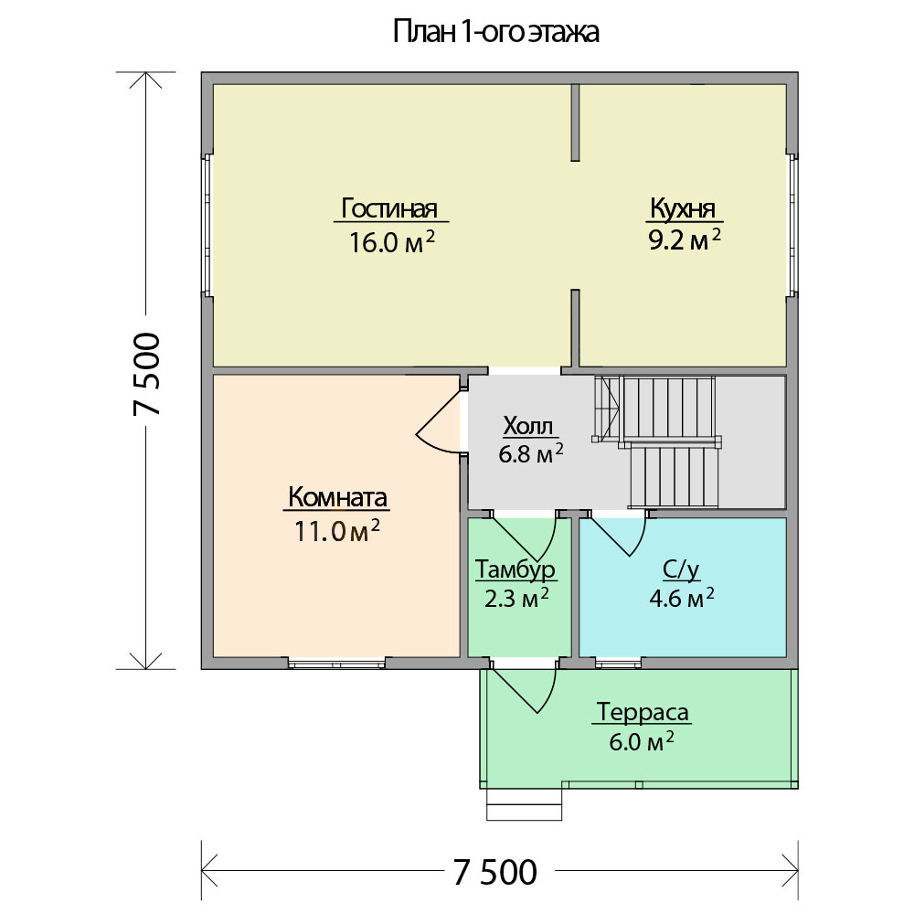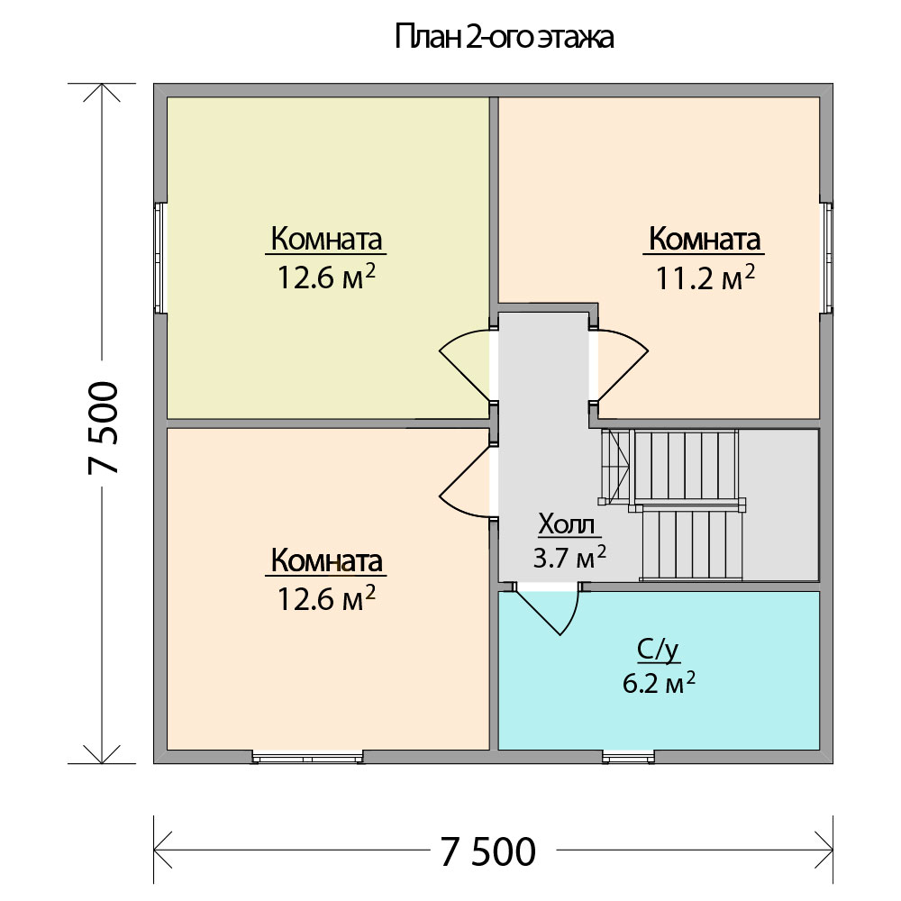 • Высота потолков 1-го и 2-го этажей: 2600 мм.