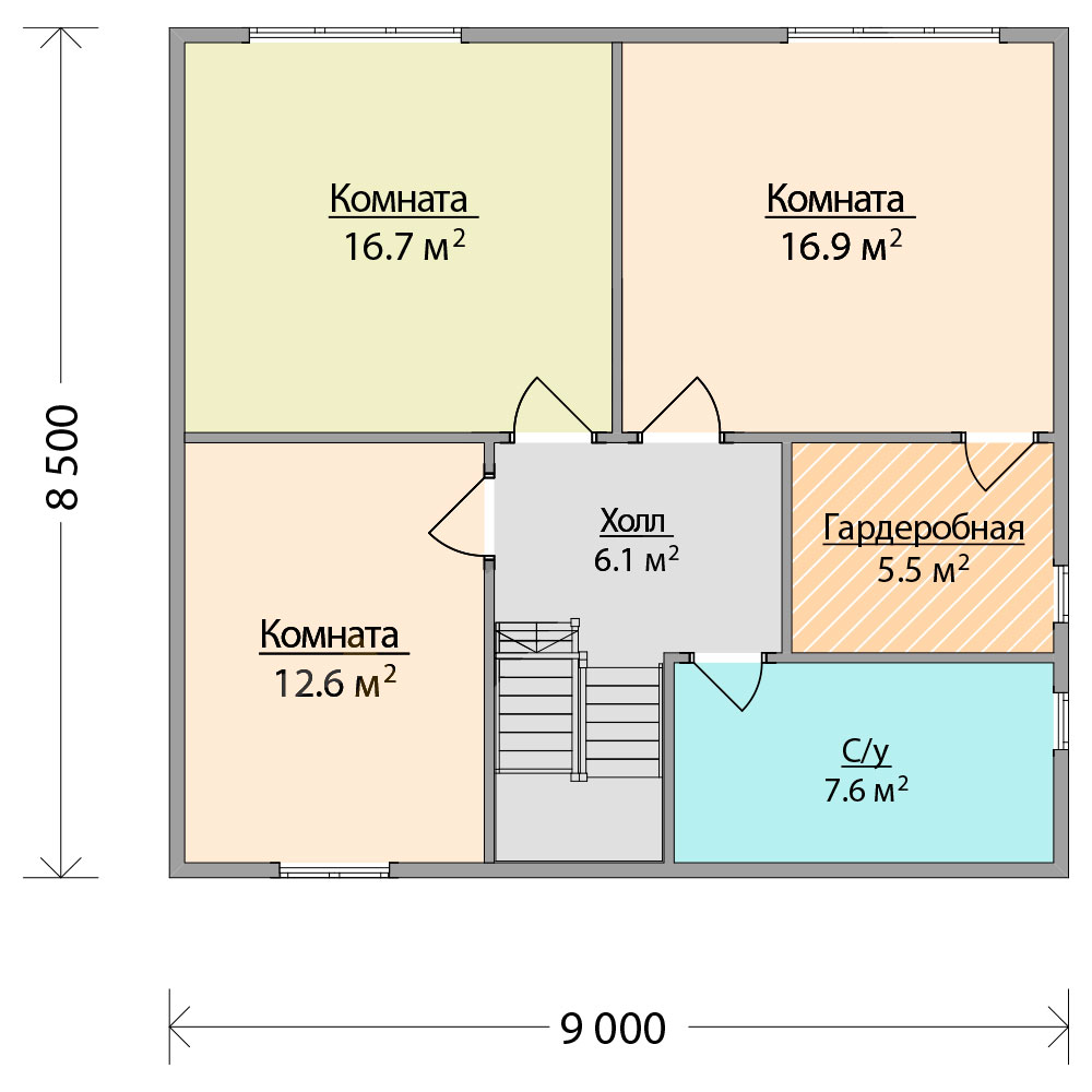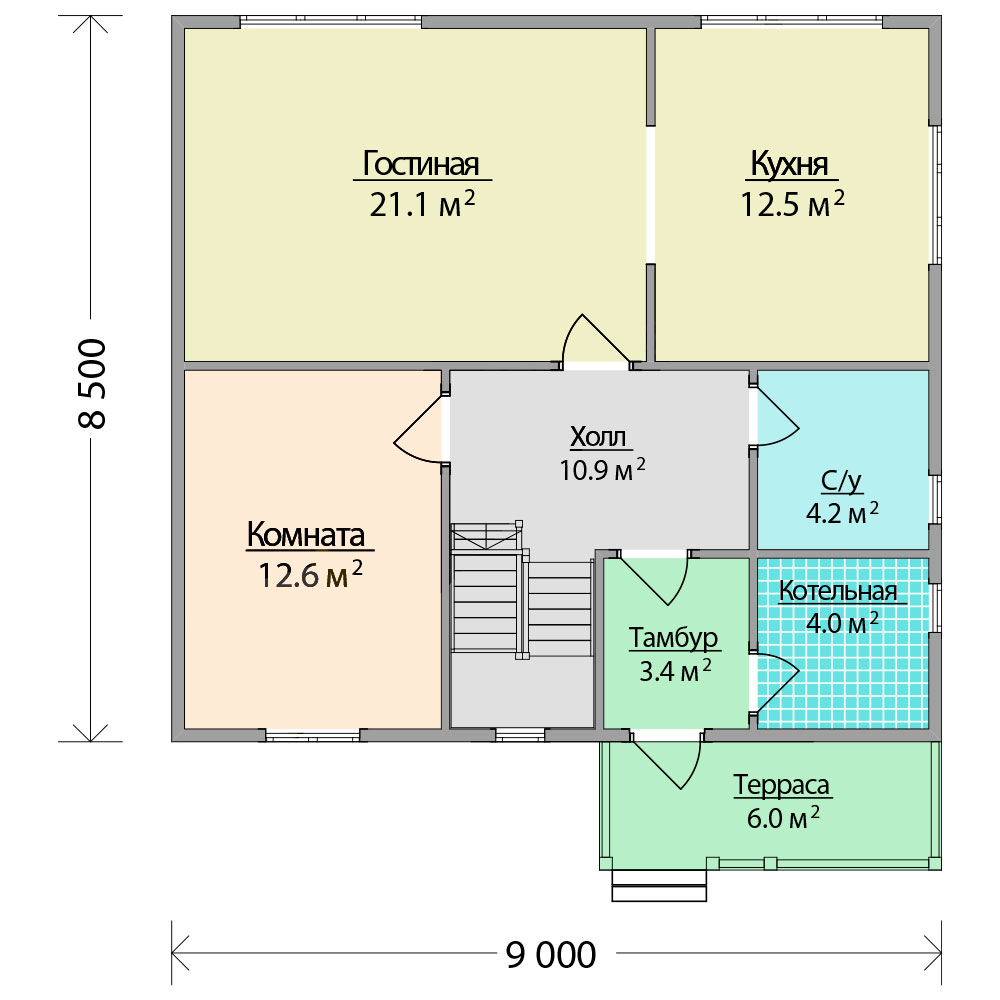 • Высота потолков 1-го и 2-го этажей: 2600 мм.