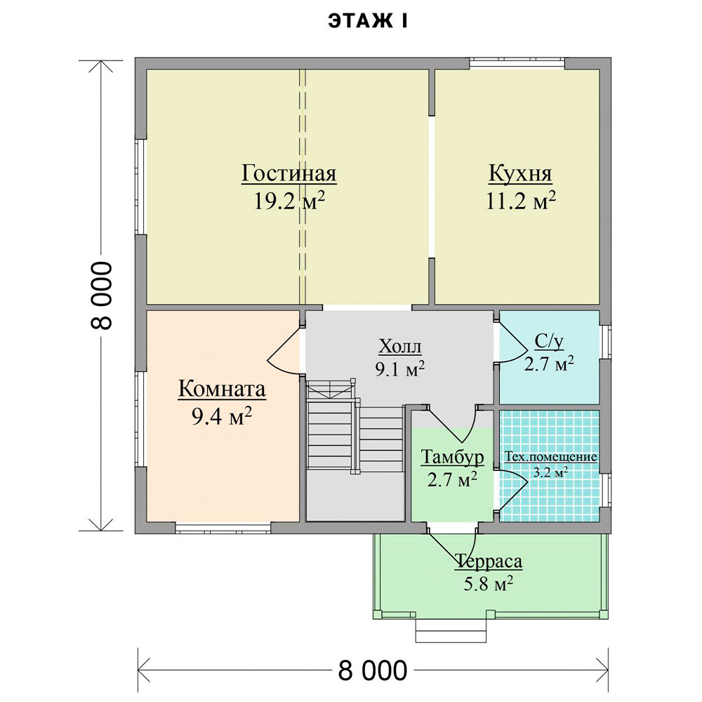 - Высота потолков 1-го и 2-го этажей: 2600 мм.