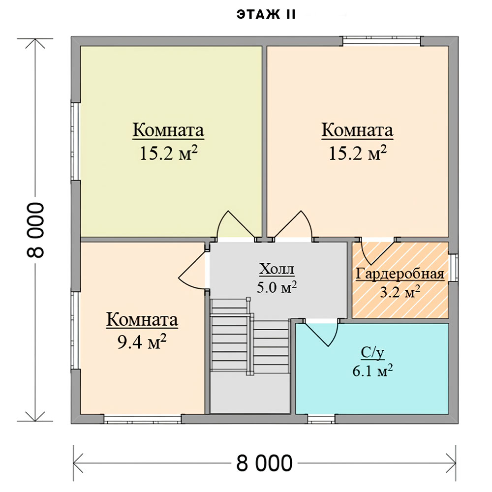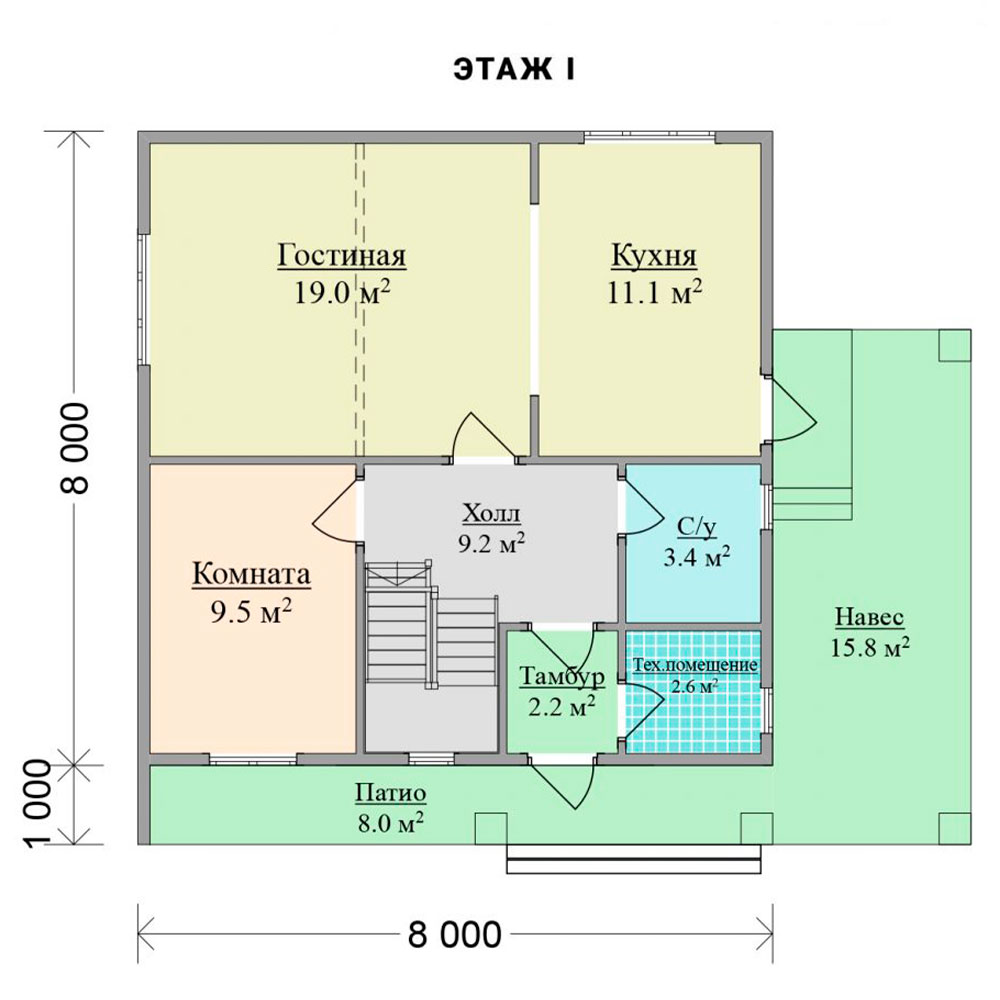 - Высота потолков 1-го и 2-го этажей: 2600 мм.