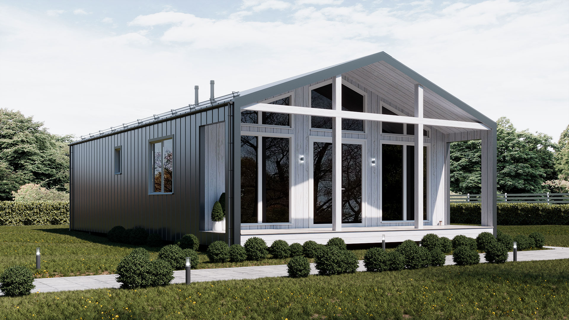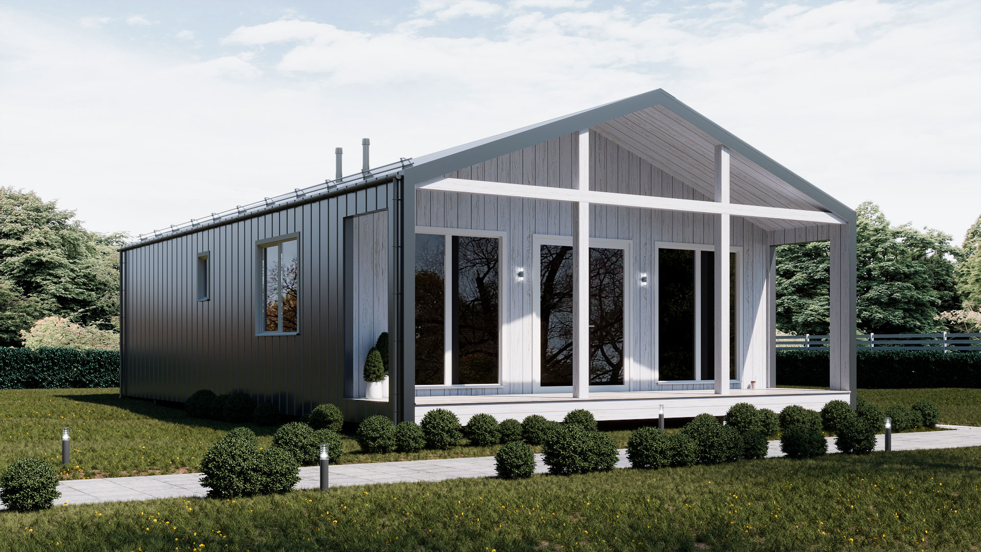 - Кровля: клик-фальц (цвет серый) с вентиляцией подкровельного пространства.