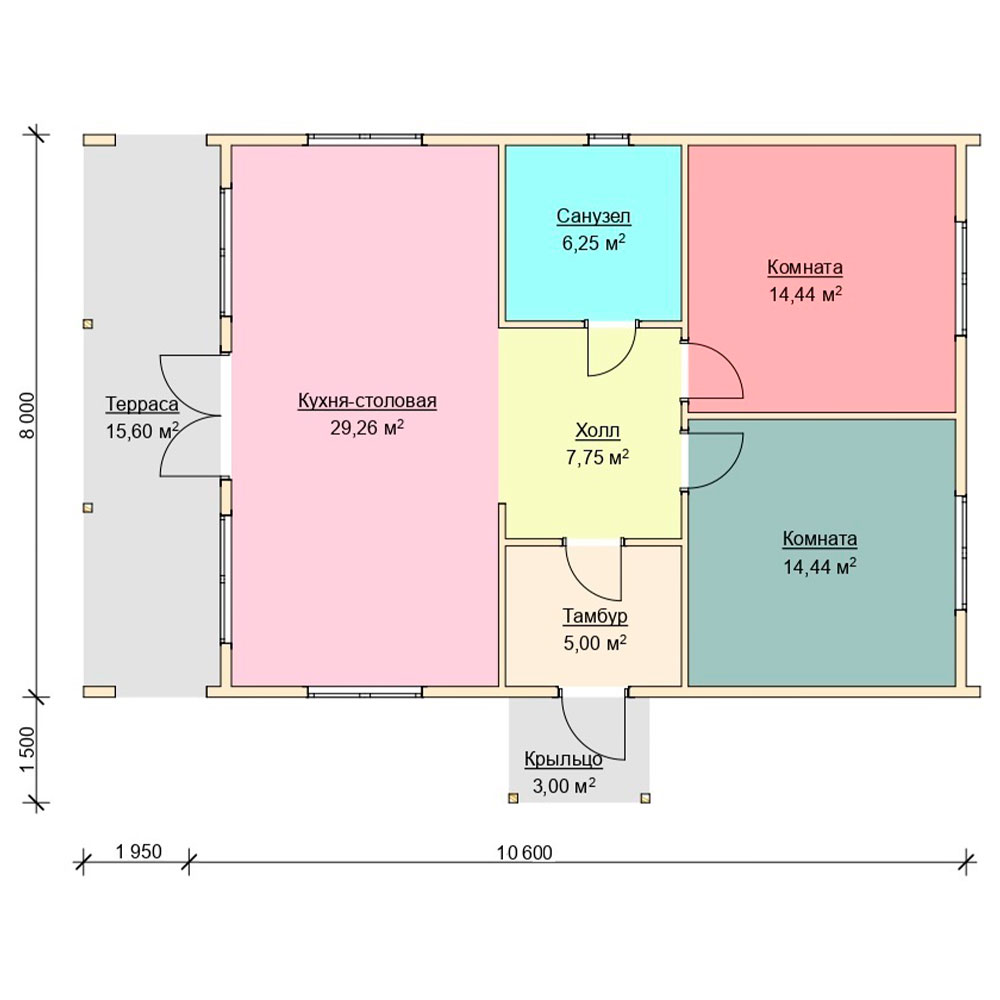 - Высота потолков: 2600 мм.