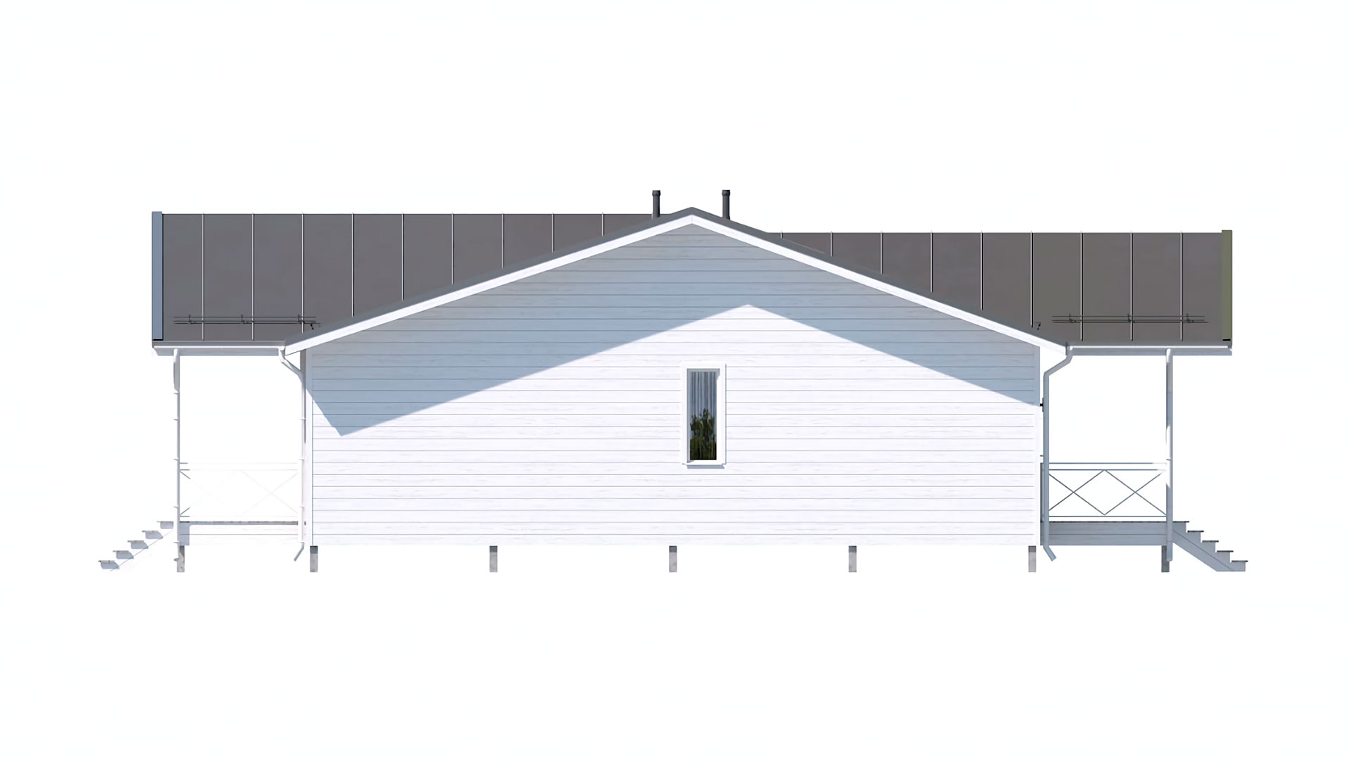 - Внешняя отделка: виниловый сайдинг Альта Профиль АЛЯСКА (цвет на выбор), монтируется внахлёст с вентиляционным зазором. Отливы металлические. Карнизы подшиваются пластиковыми софитами (цвет белый).