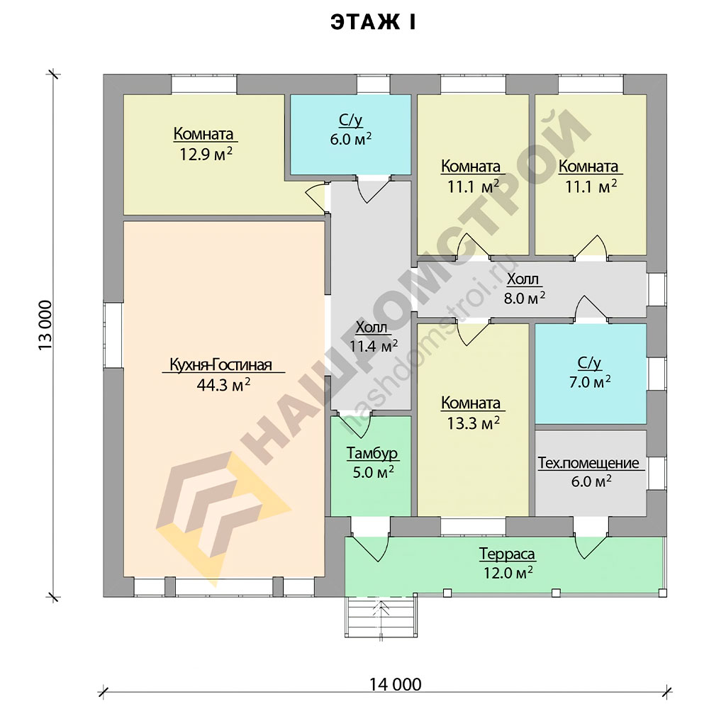 • Обвязка дома: балка составного сечения 120х140 мм.