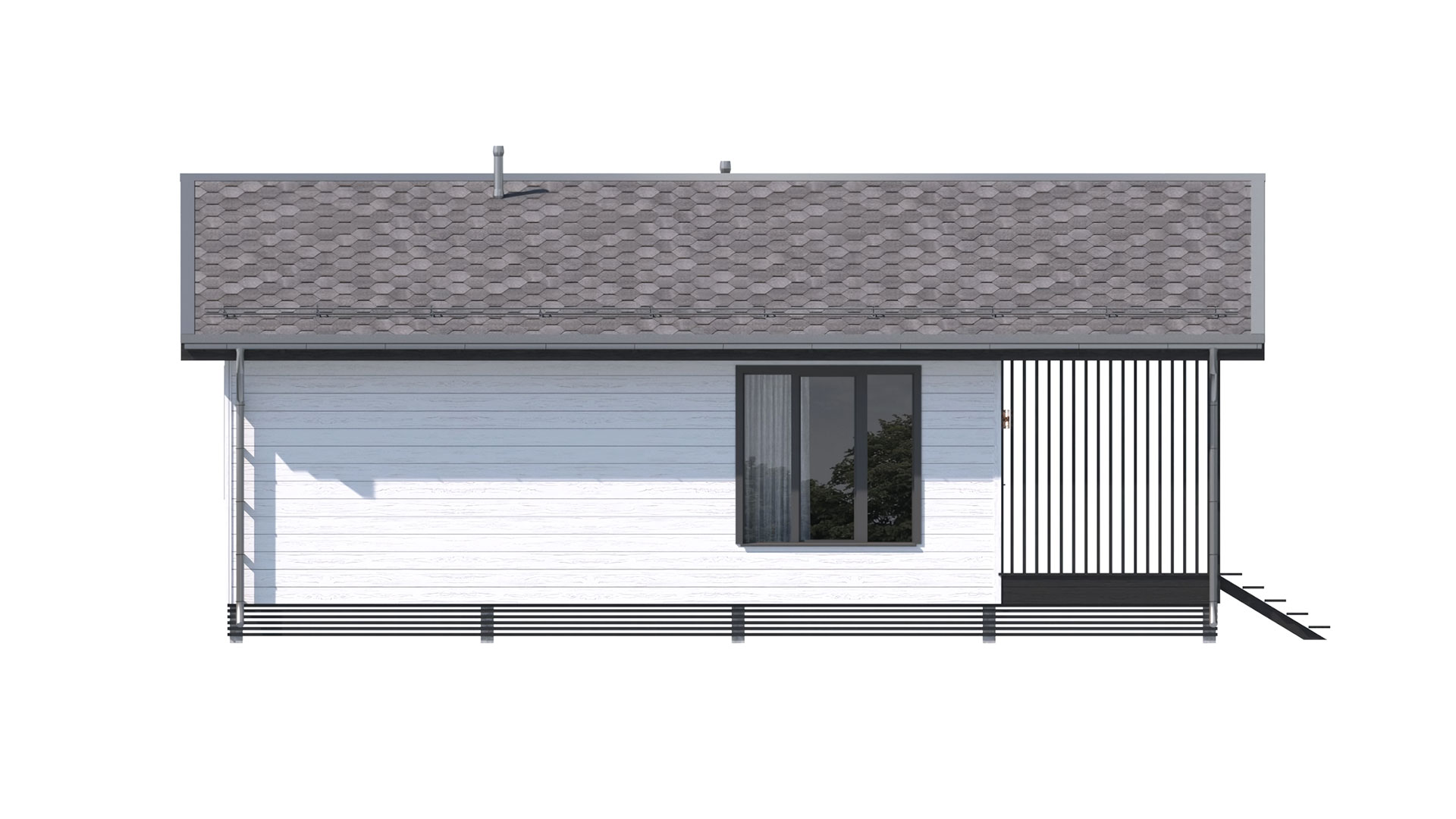 Функциональность и эстетика - основные черты одноэтажного дома, в котором хватило места для размещения просторной кухни-гостиной и двух комнат, а также технических помещений и санузла. Из тамбура есть выход на большую широкую террасу, которая играет роль летней зоны отдыха. Проект дома "Семейный" - хороший выбор для проживания небольшой семьи. Уютный коттедж мы построим "под ключ", - заезжай и живи.