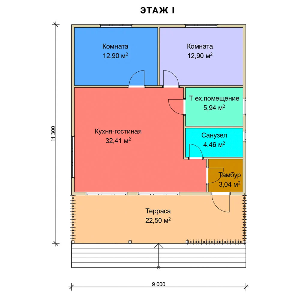 • Обвязка дома: балка составного сечения 135х190 мм, калиброванный пиломатериал камерной сушки.
