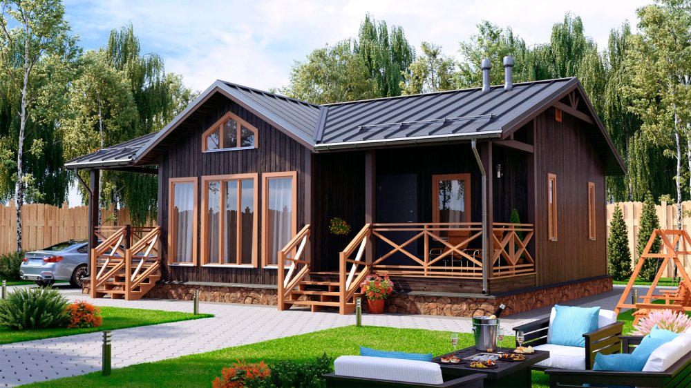С террасой Небольшая площадка для отдыха, которая украшает фасад и двор, делая жильё более уютным.