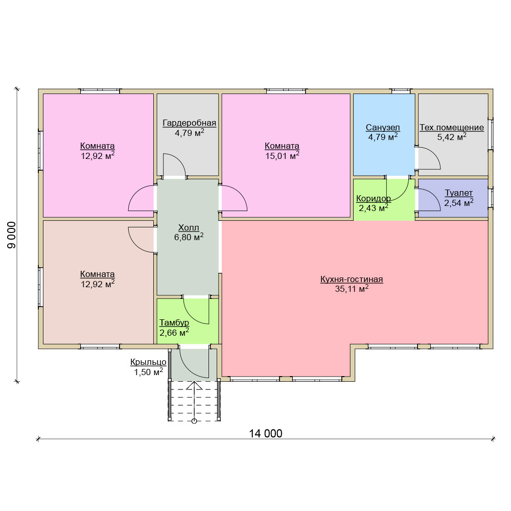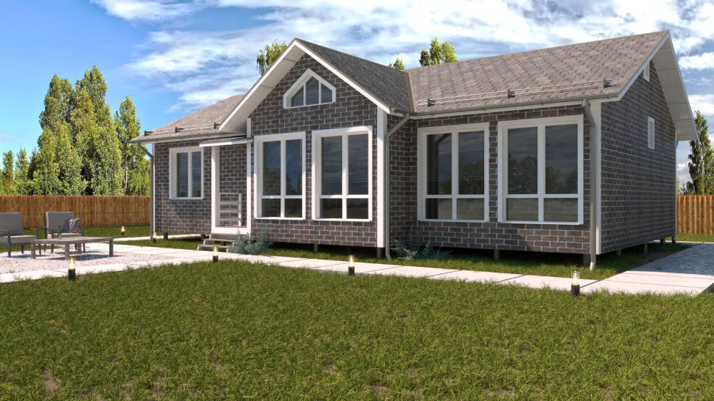 Одноэтажный каркасный дом "Варяг" - предназначенный для постоянного или сезонного проживания. Планировка в коттедже удобна для размещения двух семей, или одной семьи с детьми. В доме есть 3 раздельные комнаты, большая кухня, совмещенная с гостиной. Дополнительные помещения - санузел, технический блок, коридор, просторный холл, тамбур (вход с крыльца). Всё внутреннее пространство утеплено, подведены необходимые коммуникаций, работает вентиляционная система.