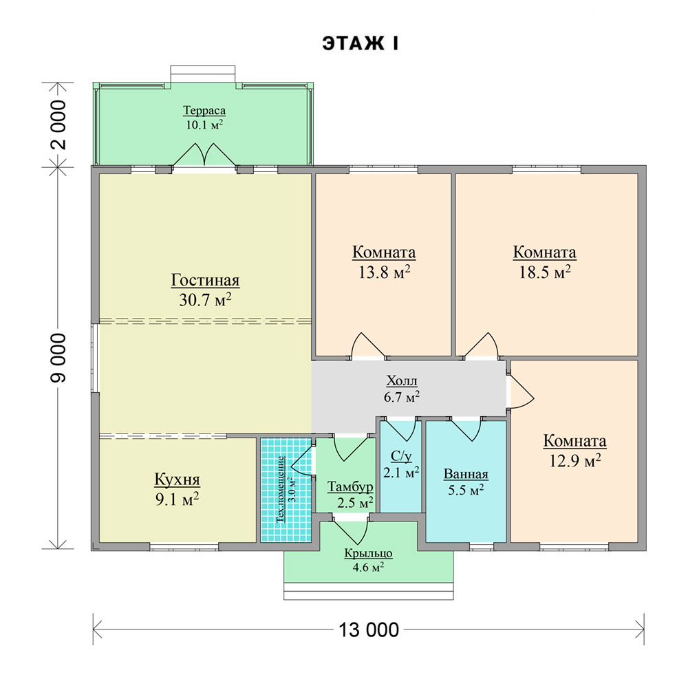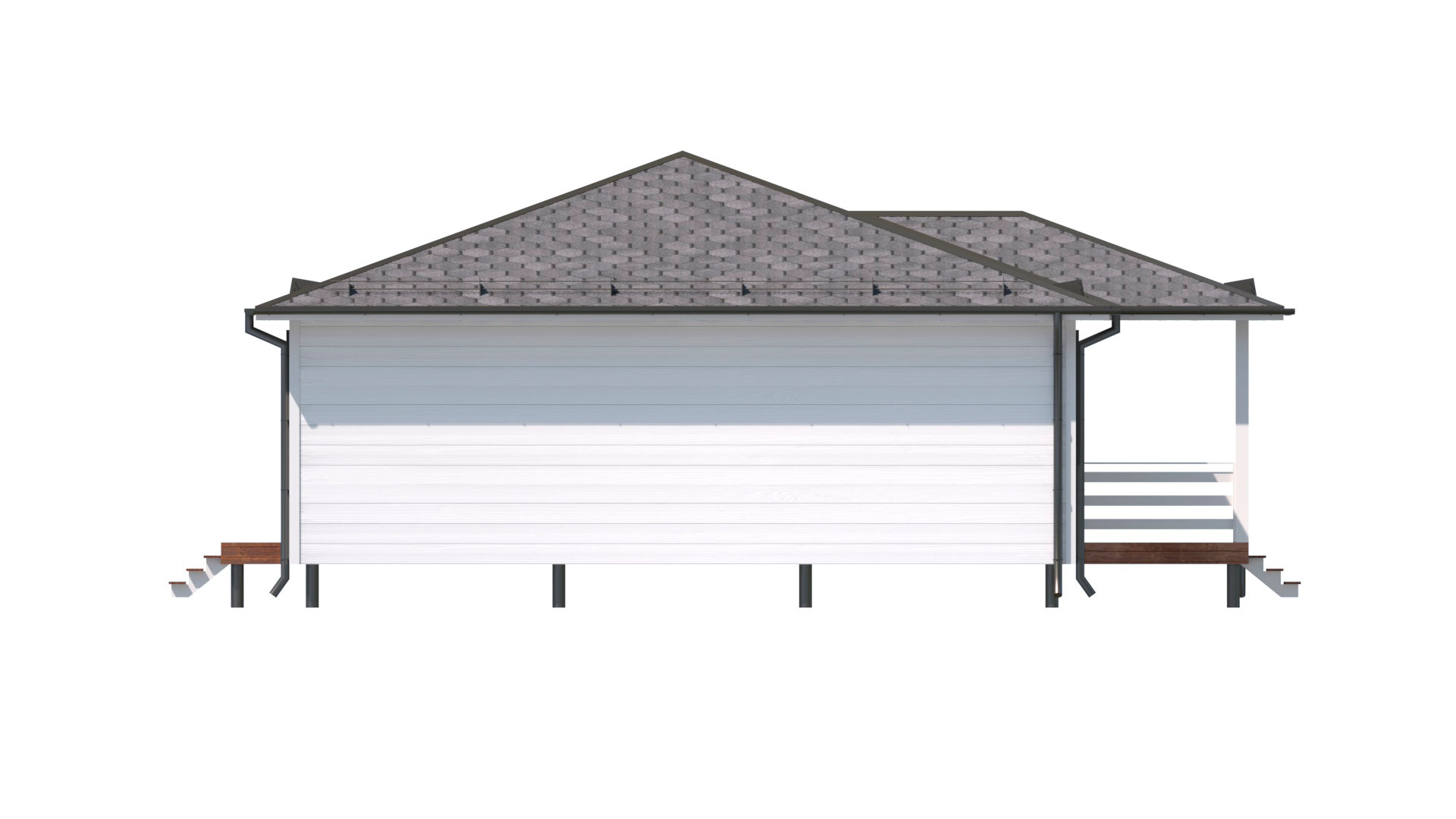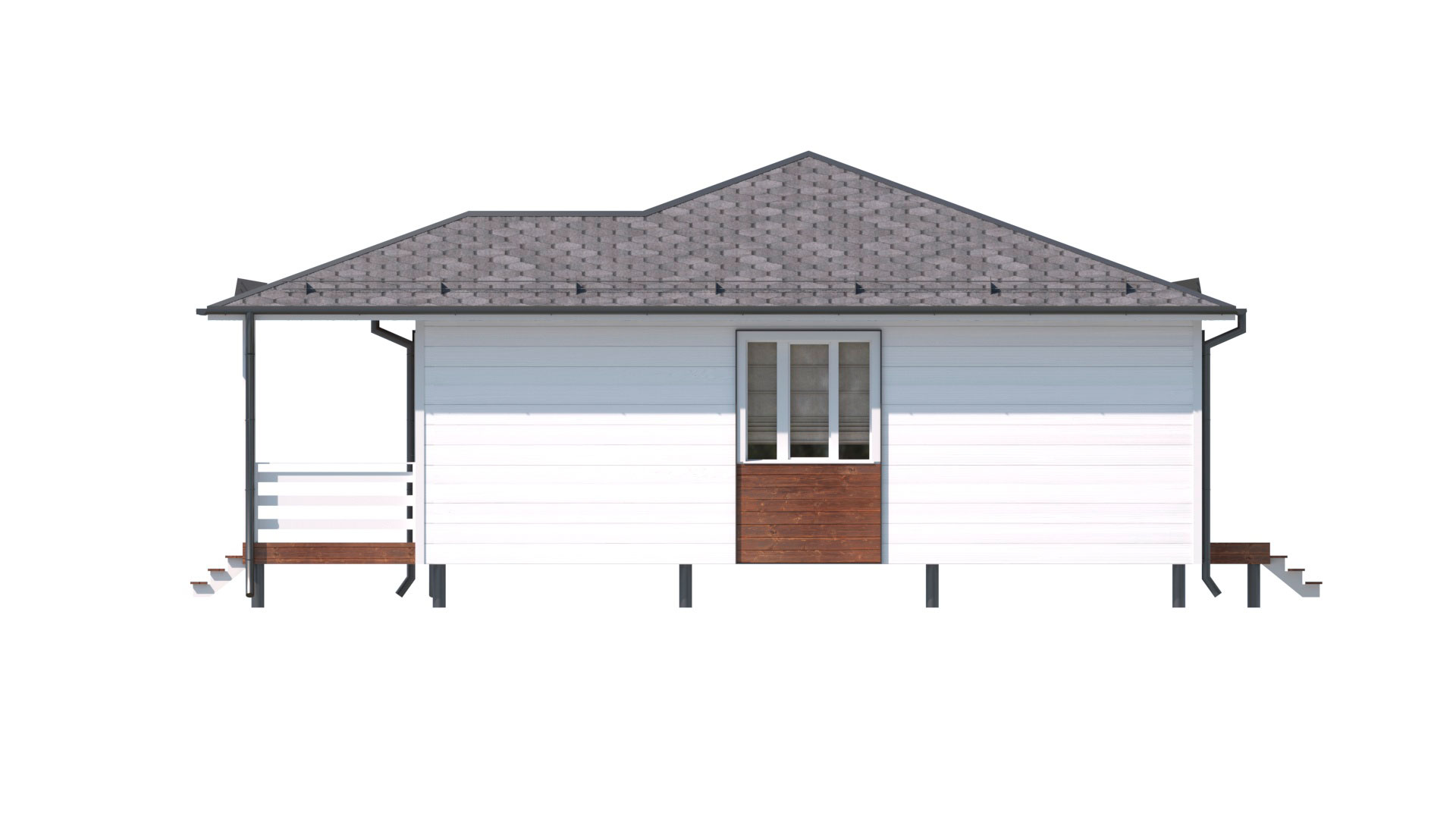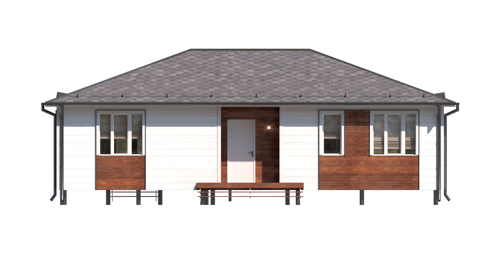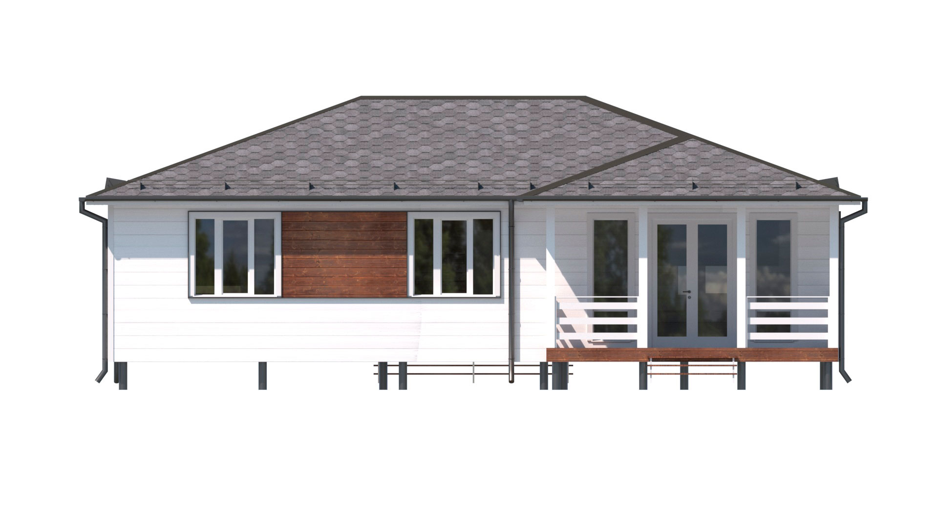 Каркасный дом "Викинг" представляет собой добротный одноэтажный коттедж классической архитектуры, с правильными пропорциями, симметрично расположенными фасадными элементами, удобной планировкой комнат. В доме есть 3 раздельные жилые комнаты, кухня, объединенная с гостиной, тамбур, санузел. Из гостиной - выход на широкую террасу, где можно организовать дополнительное пространство для летнего отдыха или пространства для малыша.