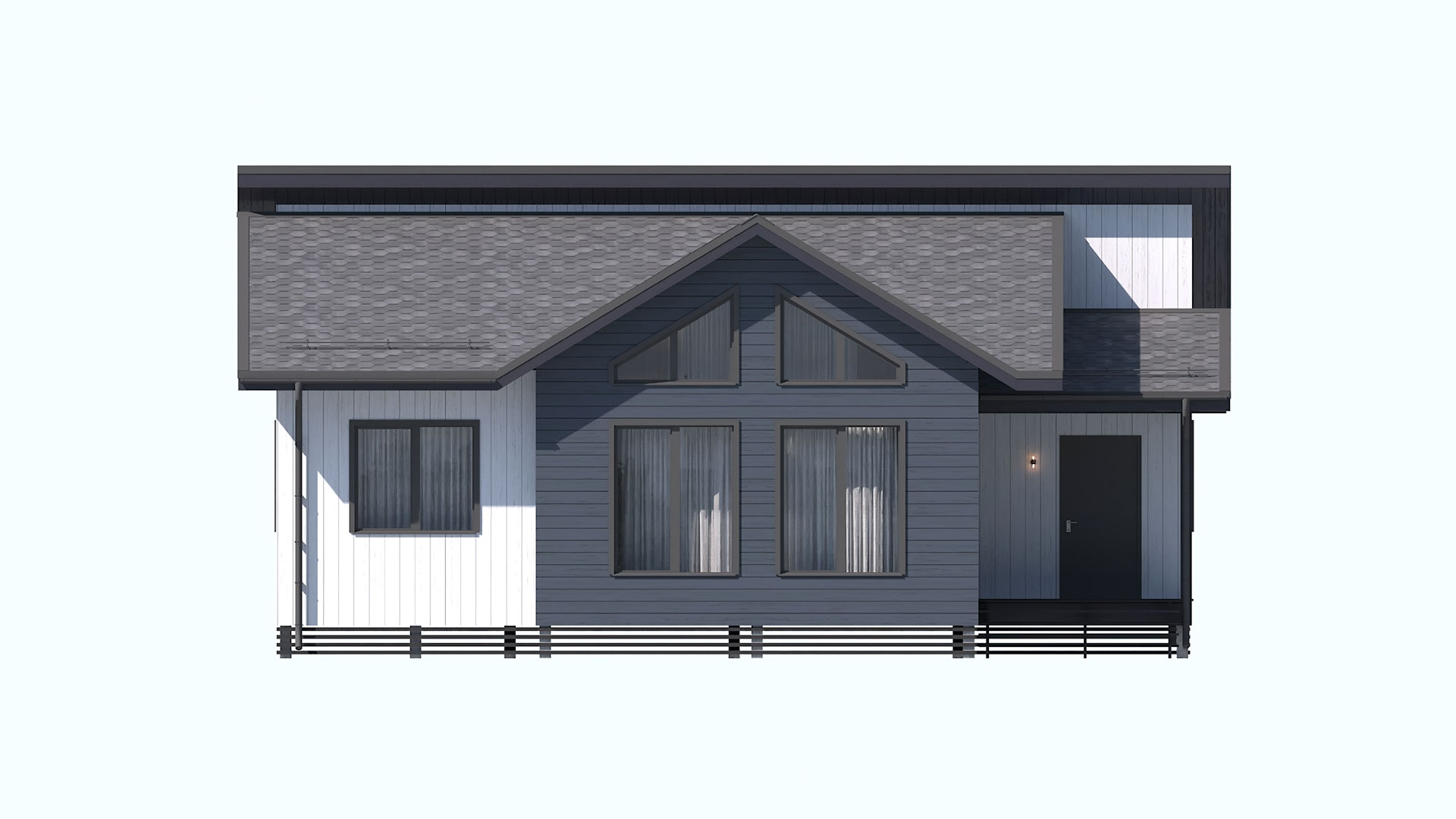 • Внешняя отделка: виниловый сайдинг Альта Профиль АЛЯСКА (цвет на выбор), монтируется внахлёст с вентиляционным зазором. Отливы металлические. Карнизы подшиваются пластиковыми софитами (цвет белый).