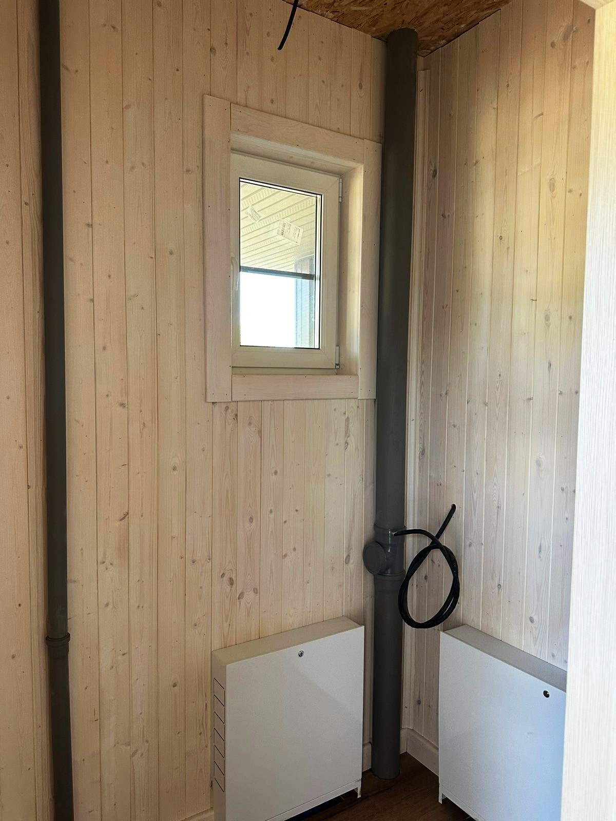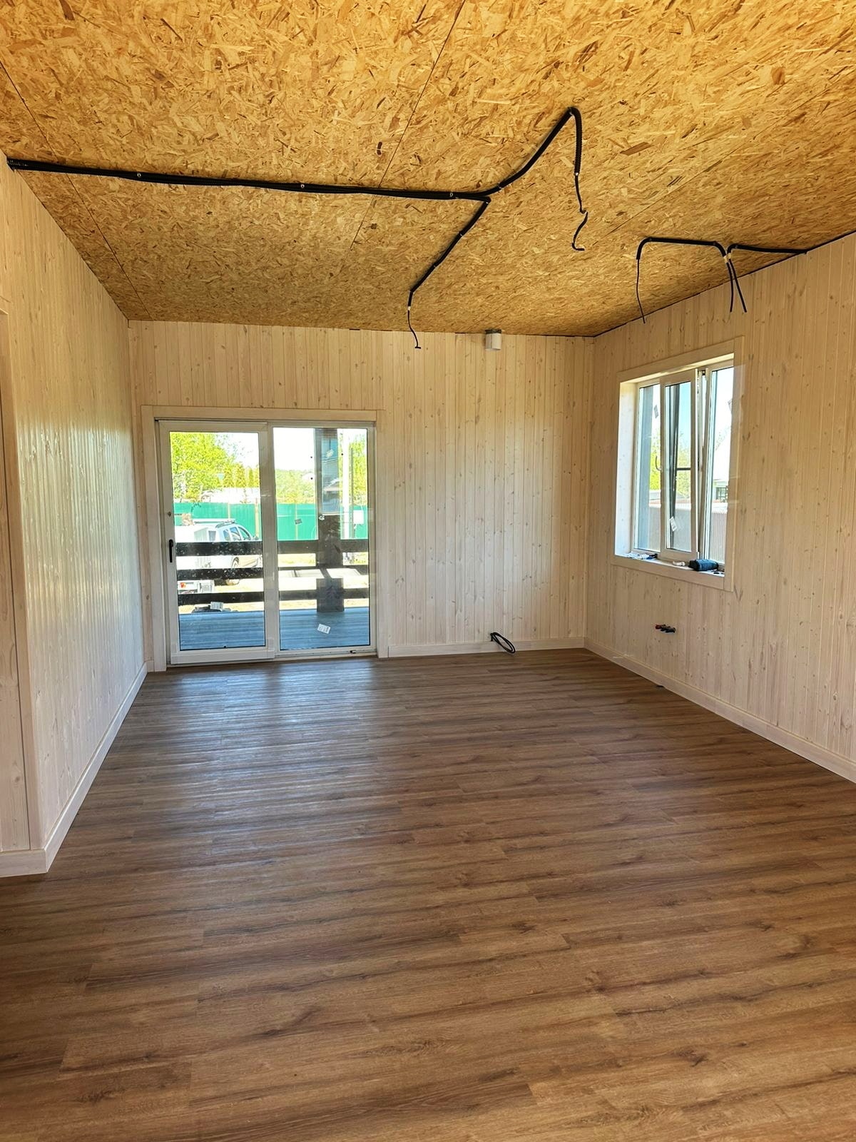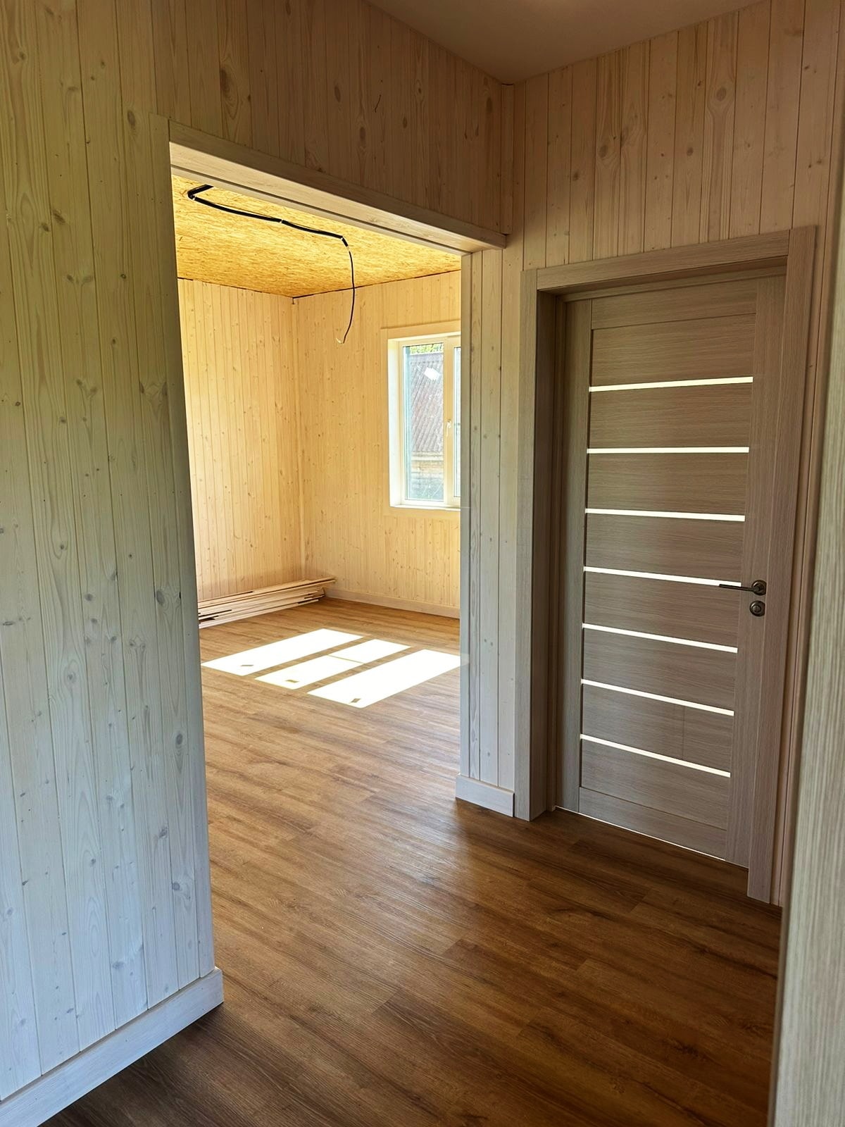 На первом этаже расположены гостиная и кухня, большой тамбур, холл, жилая комната, технические помещения. Из тамбура - выход на патио. На втором этаже - три комнаты, холл, санузел, гардеробная. Каркасный дом сдается с чистовой отделкой, и полностью готов к проживанию. По желанию клиента, мы можем выполнить дизайнерские работы, укомплектовать помещения мебелью.