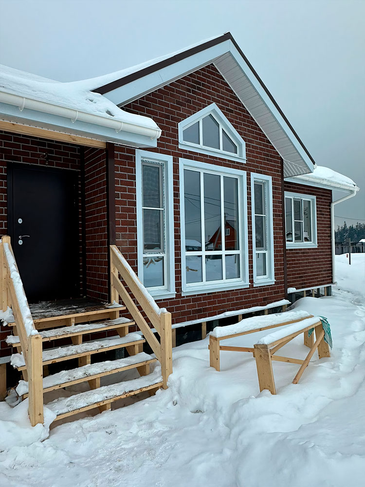Проект "Варяг" - это просторный комфортабельный дом для большой семьи. Все помещения находятся на одном этаже, поэтому проживание будет удобным для пожилых людей. Отличительные особенности архитектуры - очень большие, близко расположенные друг к другу окна, четко выделенная центральная часть фасада, фигурная крыша, невысокое крыльцо.