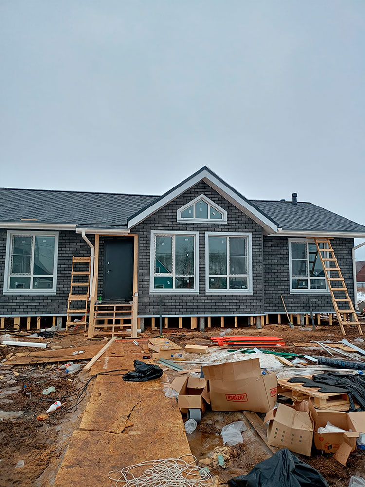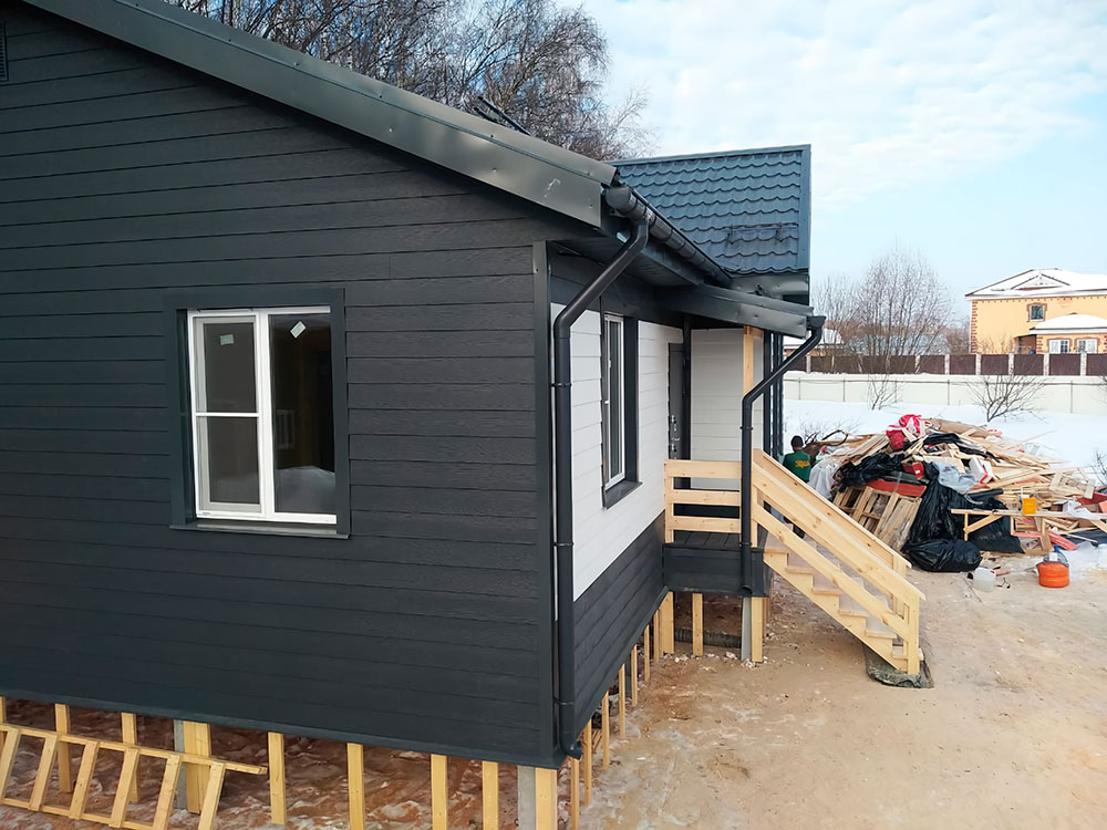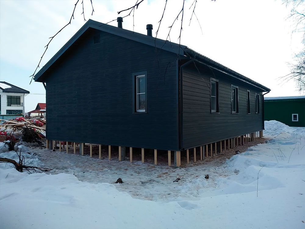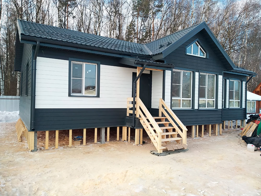 В большом загородном доме удобно жить во все сезоны. Благодаря комплексной системе утепления и гидроизоляции, помещения надёжно защищены от холода и проникновения влаги. В каркасный дом подводятся все необходимые коммуникации, выполняется чистовая (или дизайнерская) отделка. Наши специалисты могут также установить сантехническое оборудование и встроенную мебелью. Планировкой предусмотрены три просторные комнаты, обеденная зона (кухня и гостиная - 31 м2), техническое помещение, два санузла.