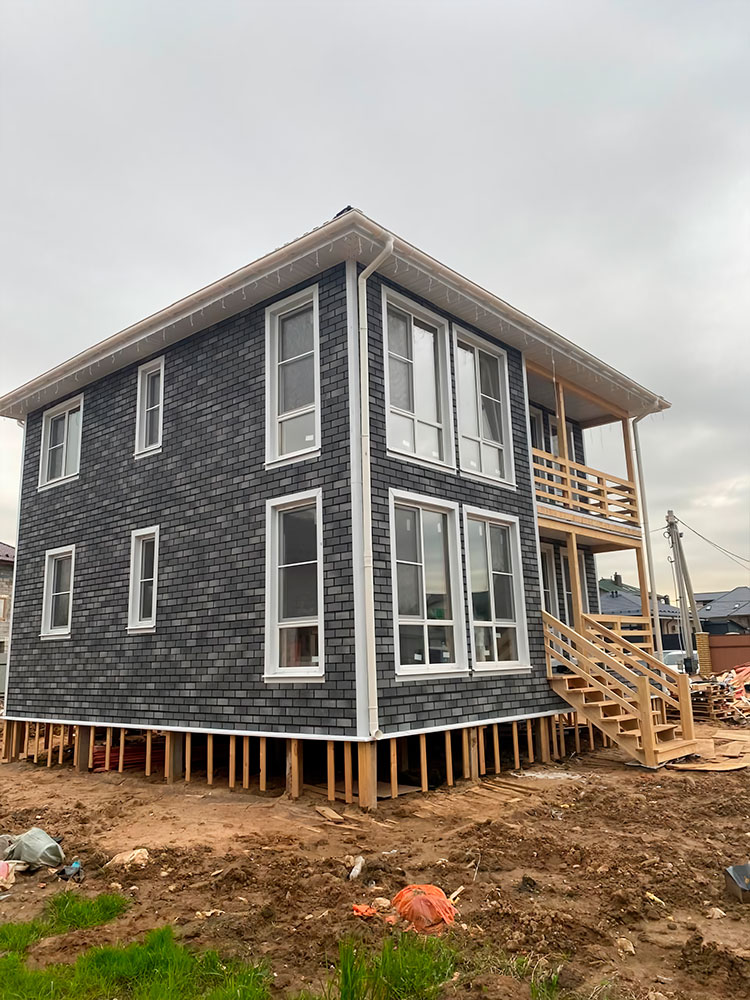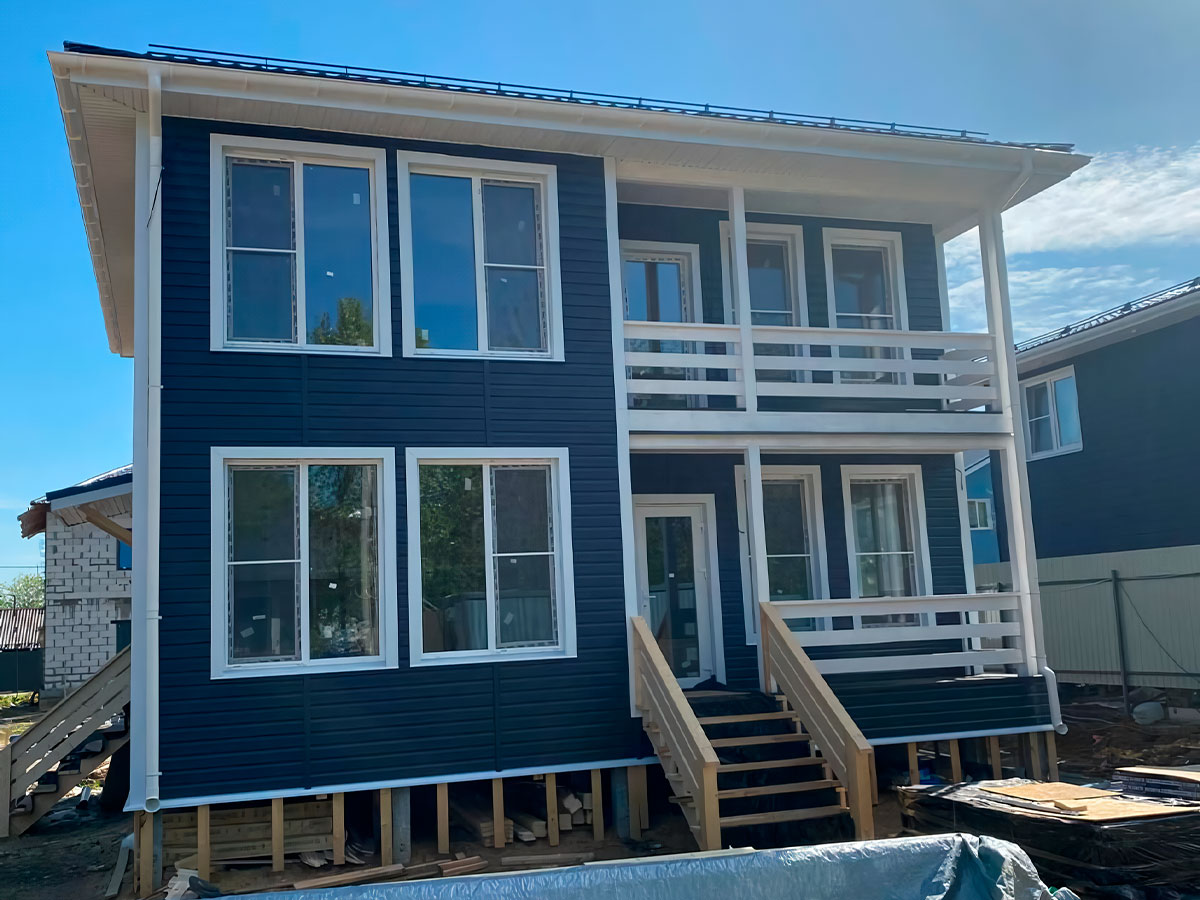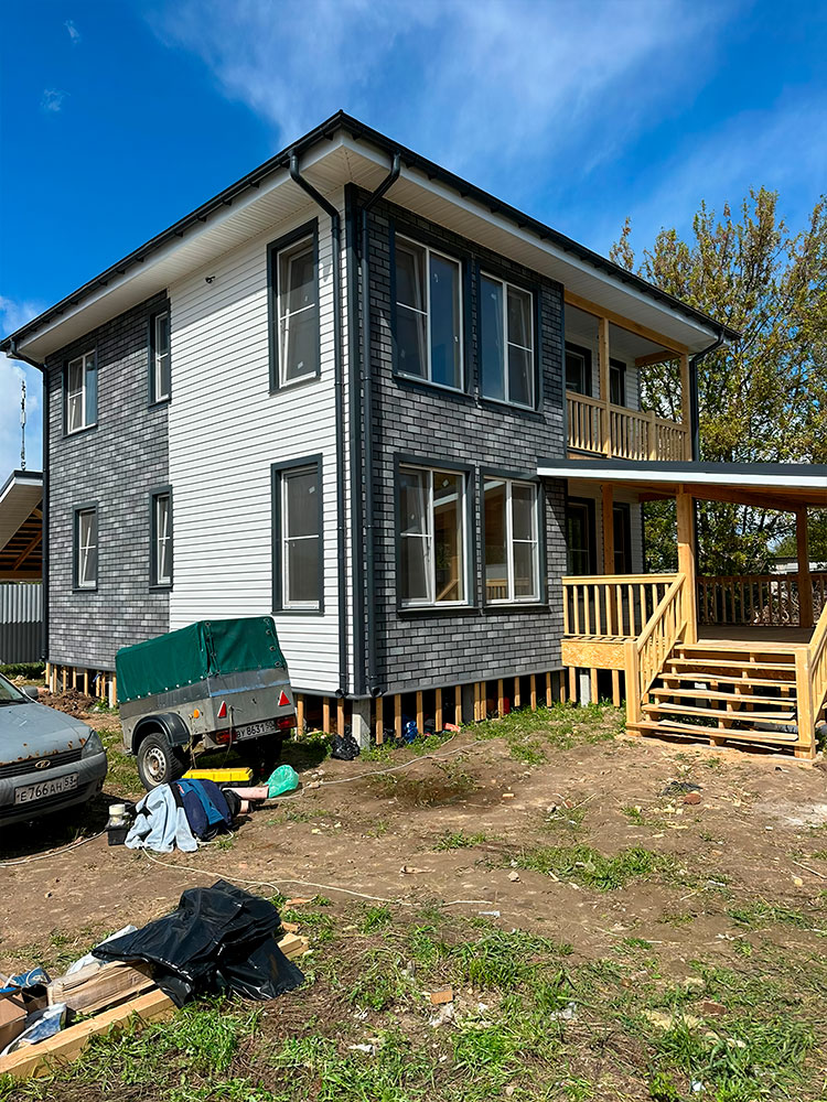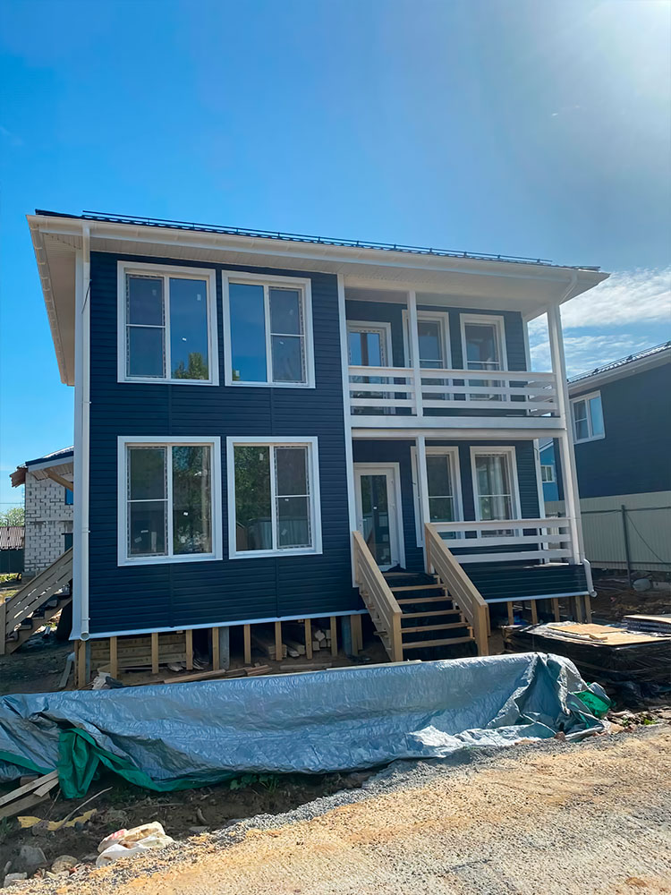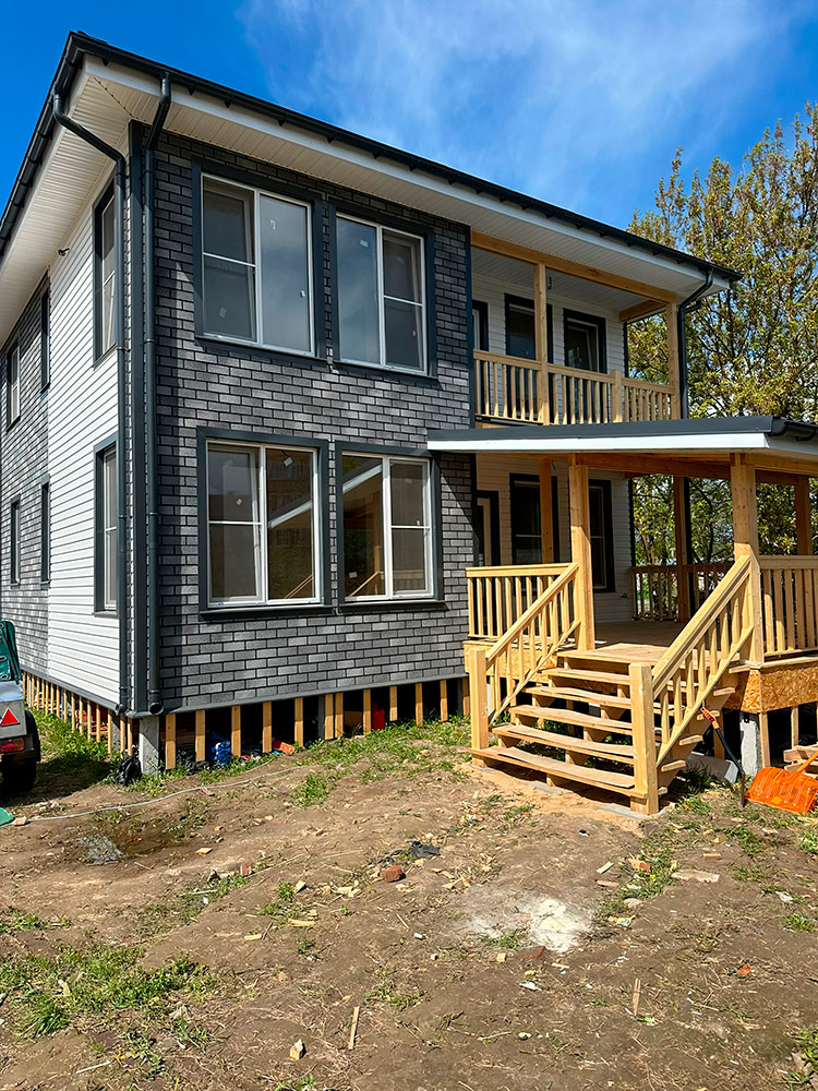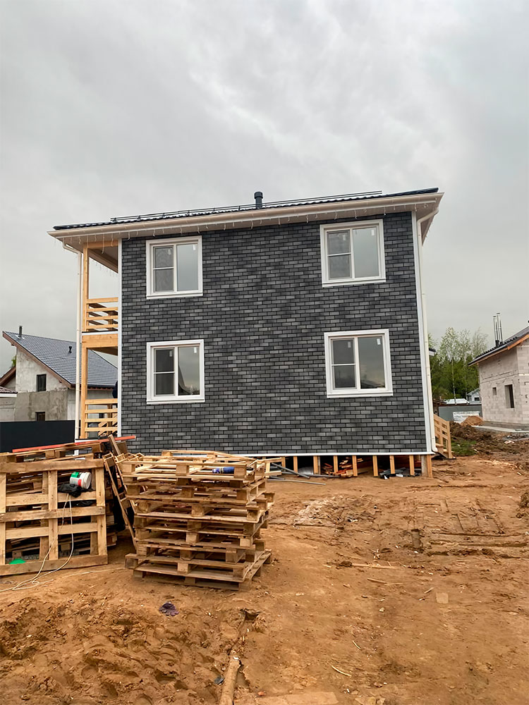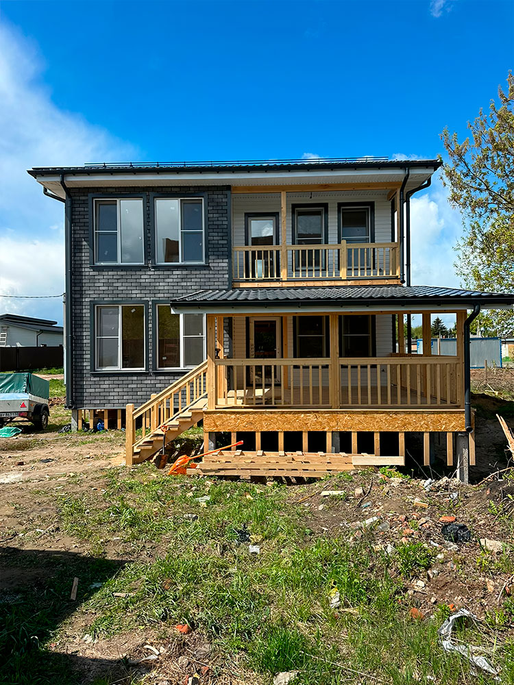 Каркасный дом с коммуникациями выбирают семьи с двумя-тремя детьми. У каждого жильца будет собственное пространство. Наша компания построит Вам коттедж за два месяца. Заказчик может выбрать отделочные материалы и оформить договор на выполнение дизайнерских работ.