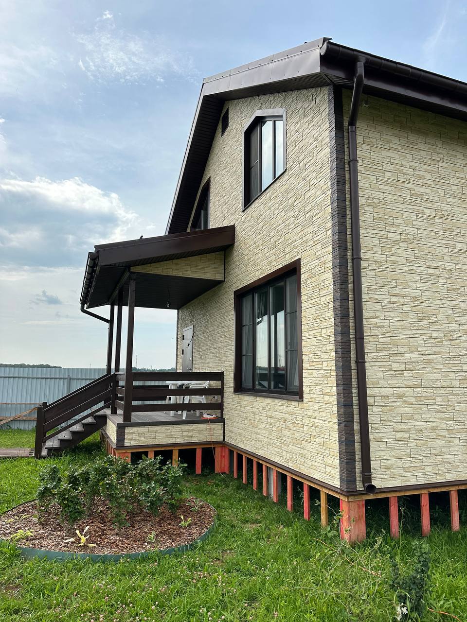Мы уточнили, можно ли внести изменения в планировку каркасного дома, прислали эскизы, и проект был быстро доработан под наши запросы. Для облицовки внешних стен мы выбрали фасадные панели, как наиболее практичный и недорогой материал.