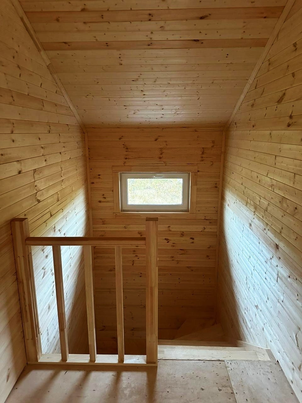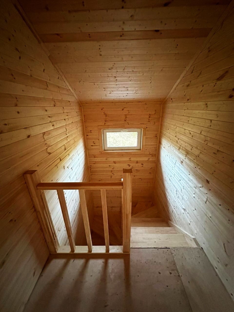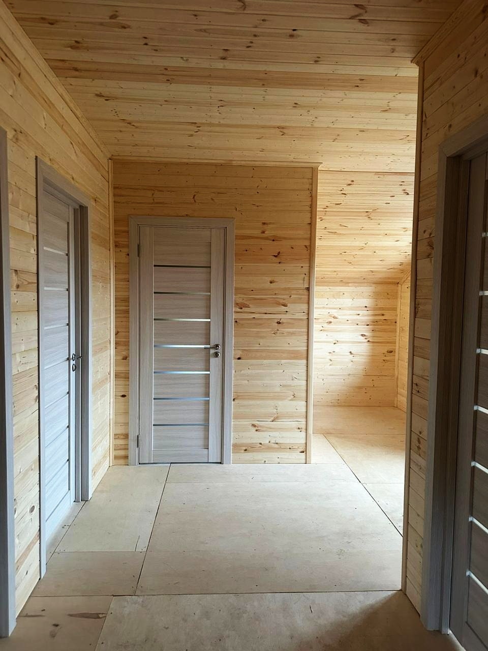 Комфортное жилое пространство. Жильцам не придется выравнивать стены, полы и потолки, все пропорции и геометрические параметры соблюдены идеально. Облицовка вагонкой предусмотрена проектом, так же, как и установка поворотной деревянной лестницы с перильным ограждением. Двери и стеклопакеты установлены герметично, качественная фурнитура обеспечит их надежную эксплуатацию. Заказчики выбрали чистовую отделку с установкой межкомнатных и балконных дверей, которые были ими выбраны самостоятельно.