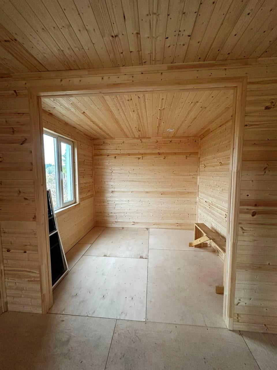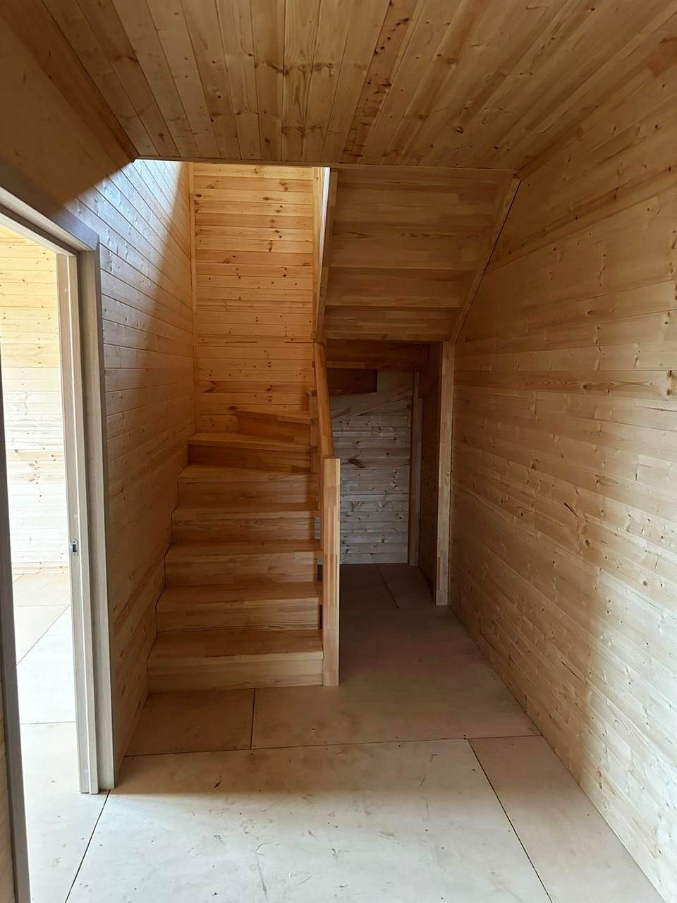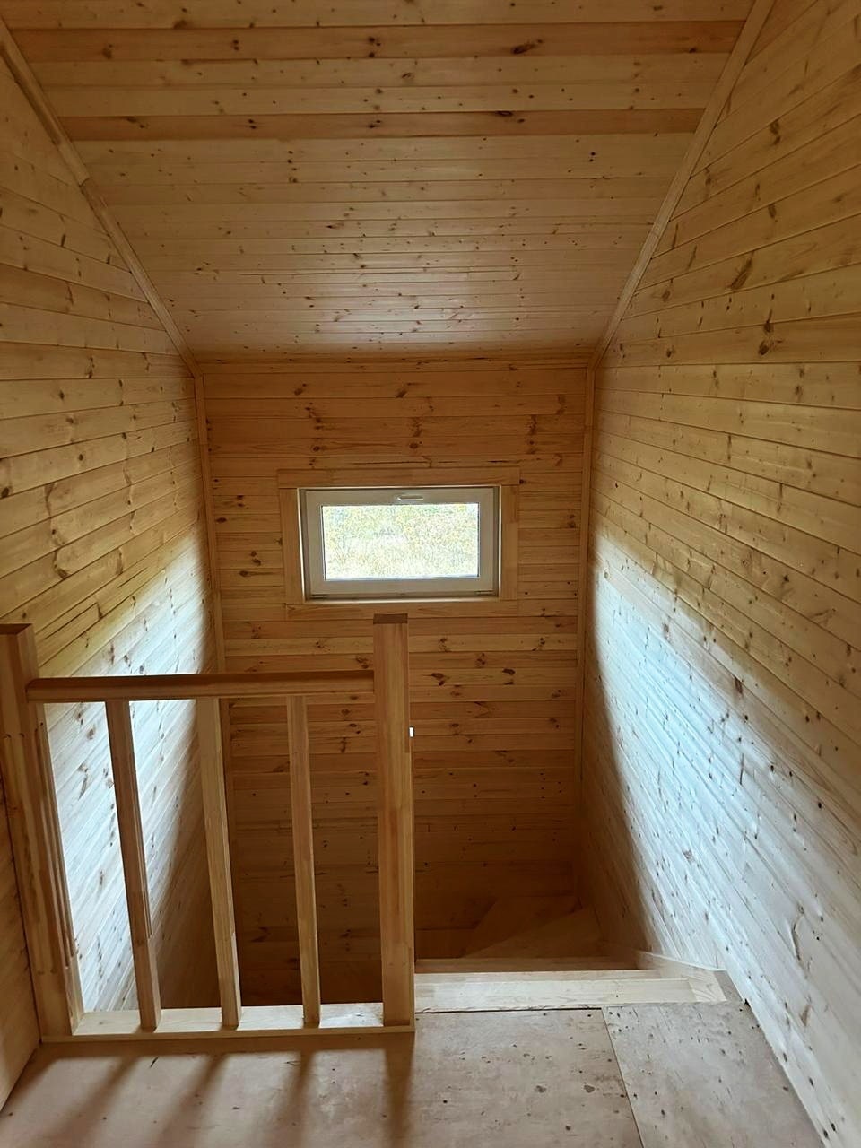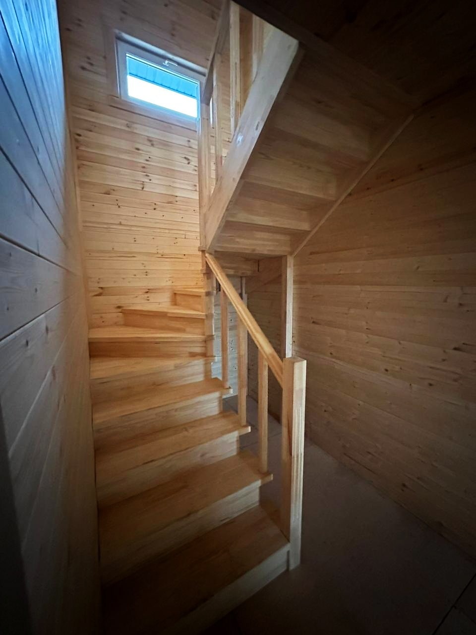 Комфортное жилое пространство. Жильцам не придется выравнивать стены, полы и потолки, все пропорции и геометрические параметры соблюдены идеально. Облицовка вагонкой предусмотрена проектом, так же, как и установка поворотной деревянной лестницы с перильным ограждением. Двери и стеклопакеты установлены герметично, качественная фурнитура обеспечит их надежную эксплуатацию. Заказчики выбрали чистовую отделку с установкой межкомнатных и балконных дверей, которые были ими выбраны самостоятельно.