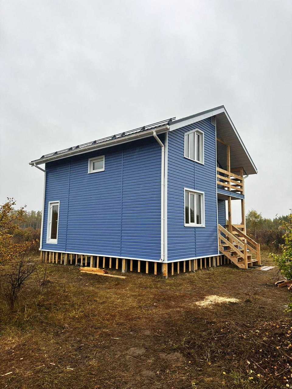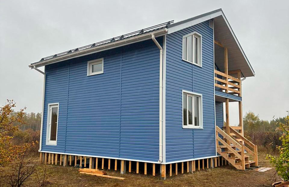 Компания "НашДомСтрой" завершила строительство двухэтажного каркасного дома площадью 128 м2 на свайном фундаменте (проект "Велес 3") в Ясногорском районе. Весь процесс, от исследования загородного участка до передачи ключей собственникам, занял 43 дня.
