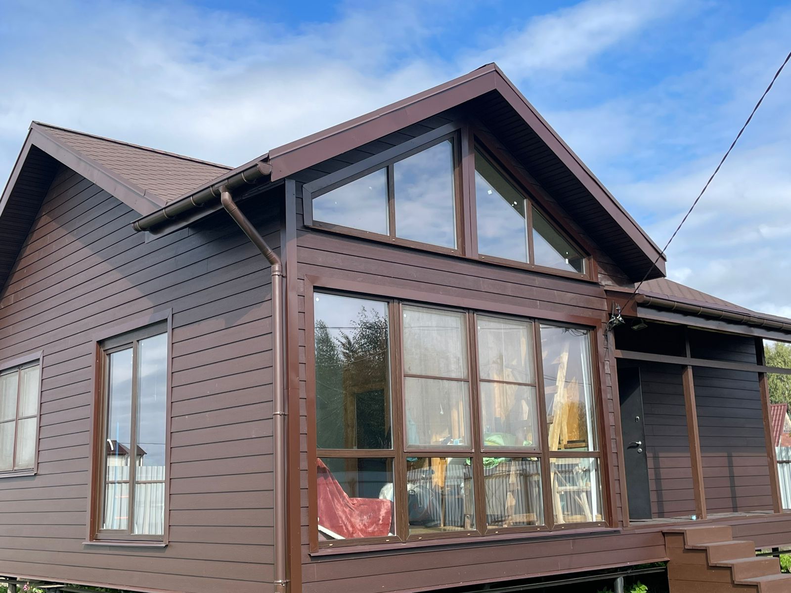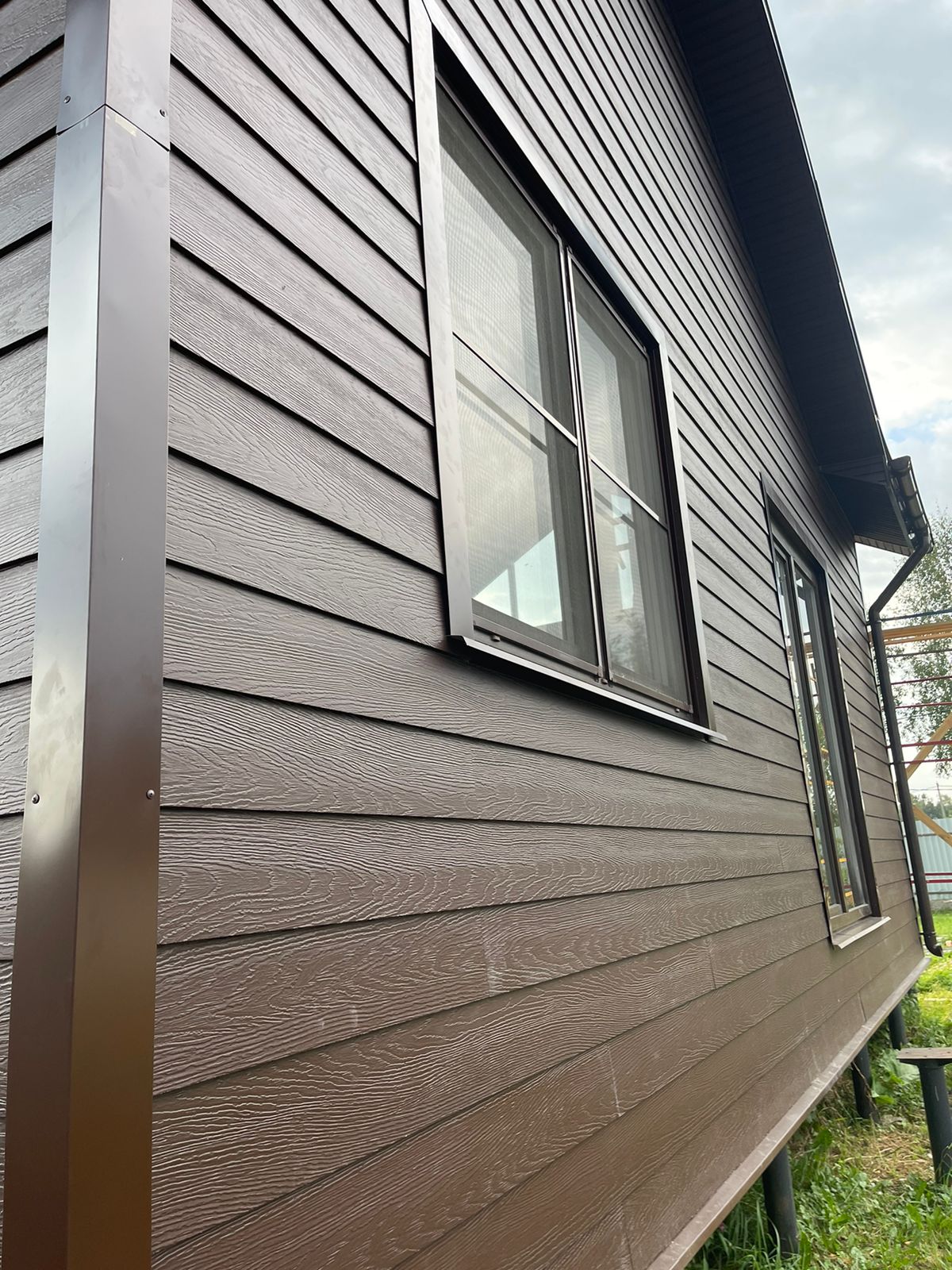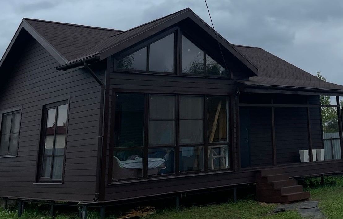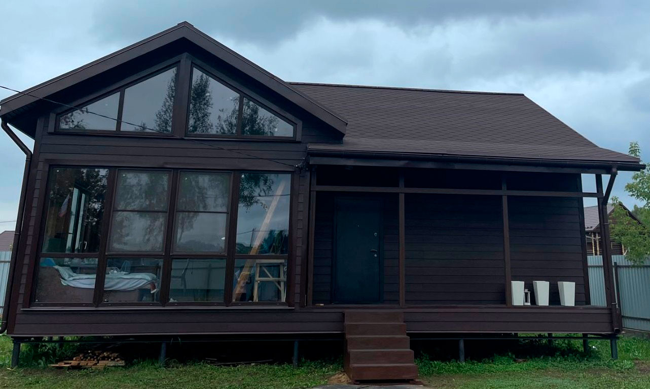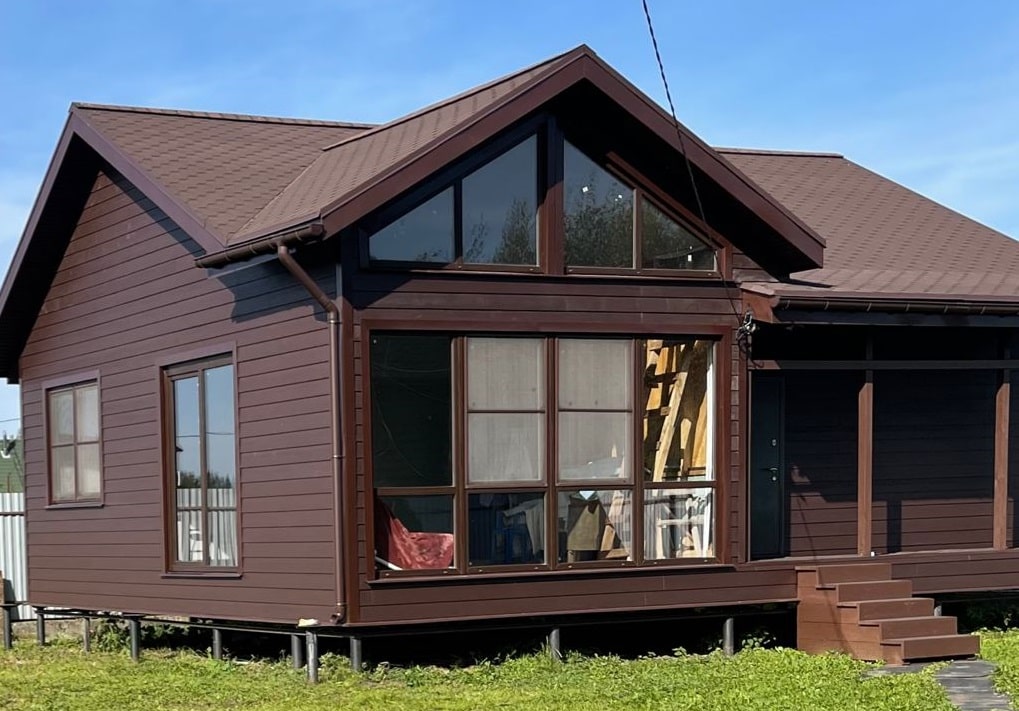 Наш выбор материала обусловлен тем, что прочность панелей на морозе не снижается, в отличие от сайдинга ПВХ - это позволяет работать с ним в любую погоду, а фактура и покрытие - долговечны.