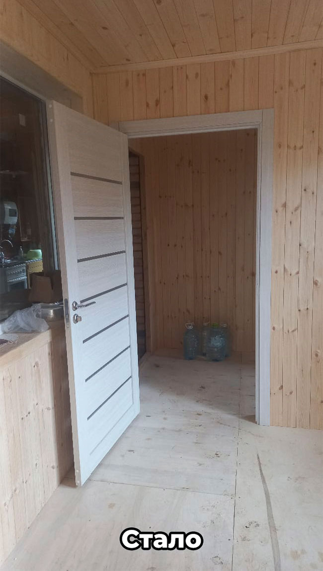 Внутренняя отделка: пол- фанера влагостойкая толщиной 18 мм под укладку ламината, паркетной доски или кварцвинила; стены и потолок- вагонка толщиной 12,5 мм.