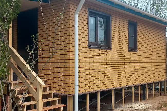 С внешней стороны стены отделаны фасадными панелями "Кирпич клинкерный", с системой вентиляции утеплителя.
