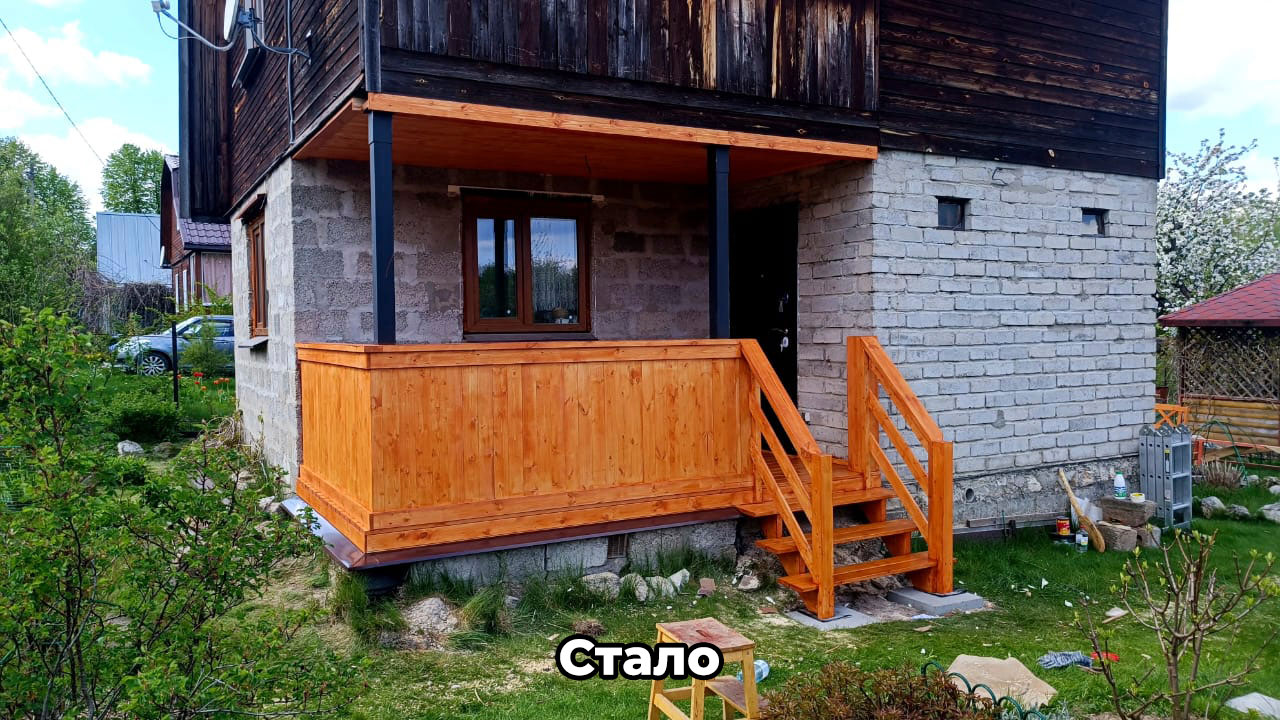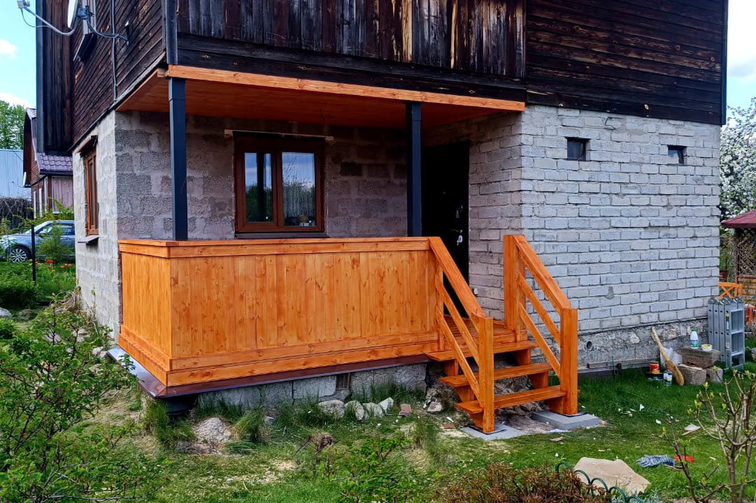 Изготовлены и покрашены полы, ограждения. Подшит вагонкой потолок террасы.
