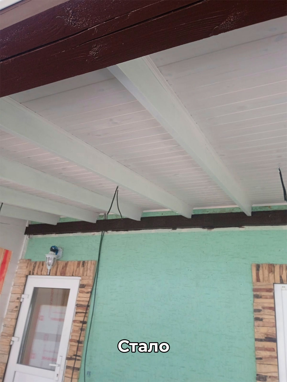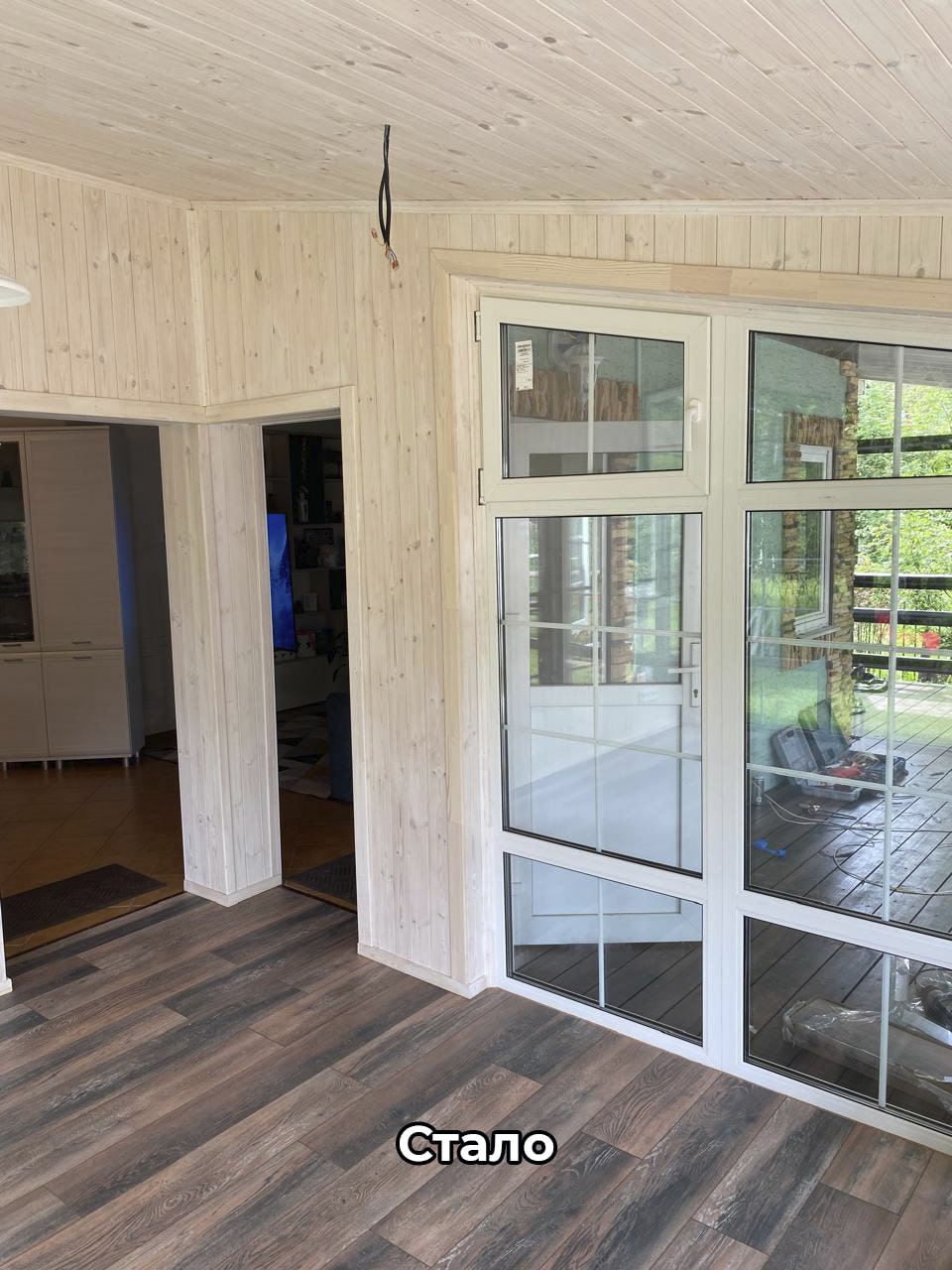 Внутренняя отделка: стены и потолок - вагонка (сосна, ель, сорт АВ) толщиной 12,5 мм.